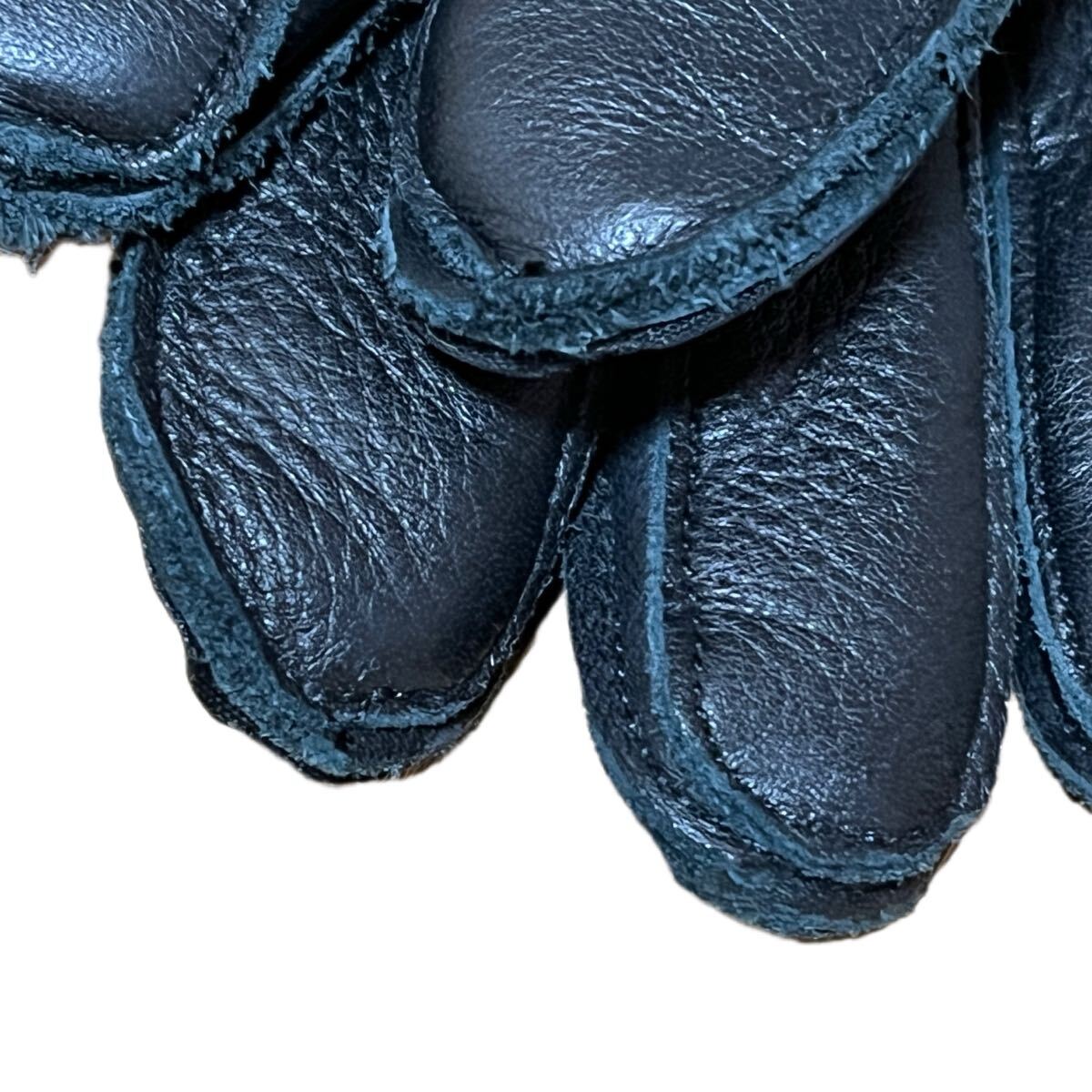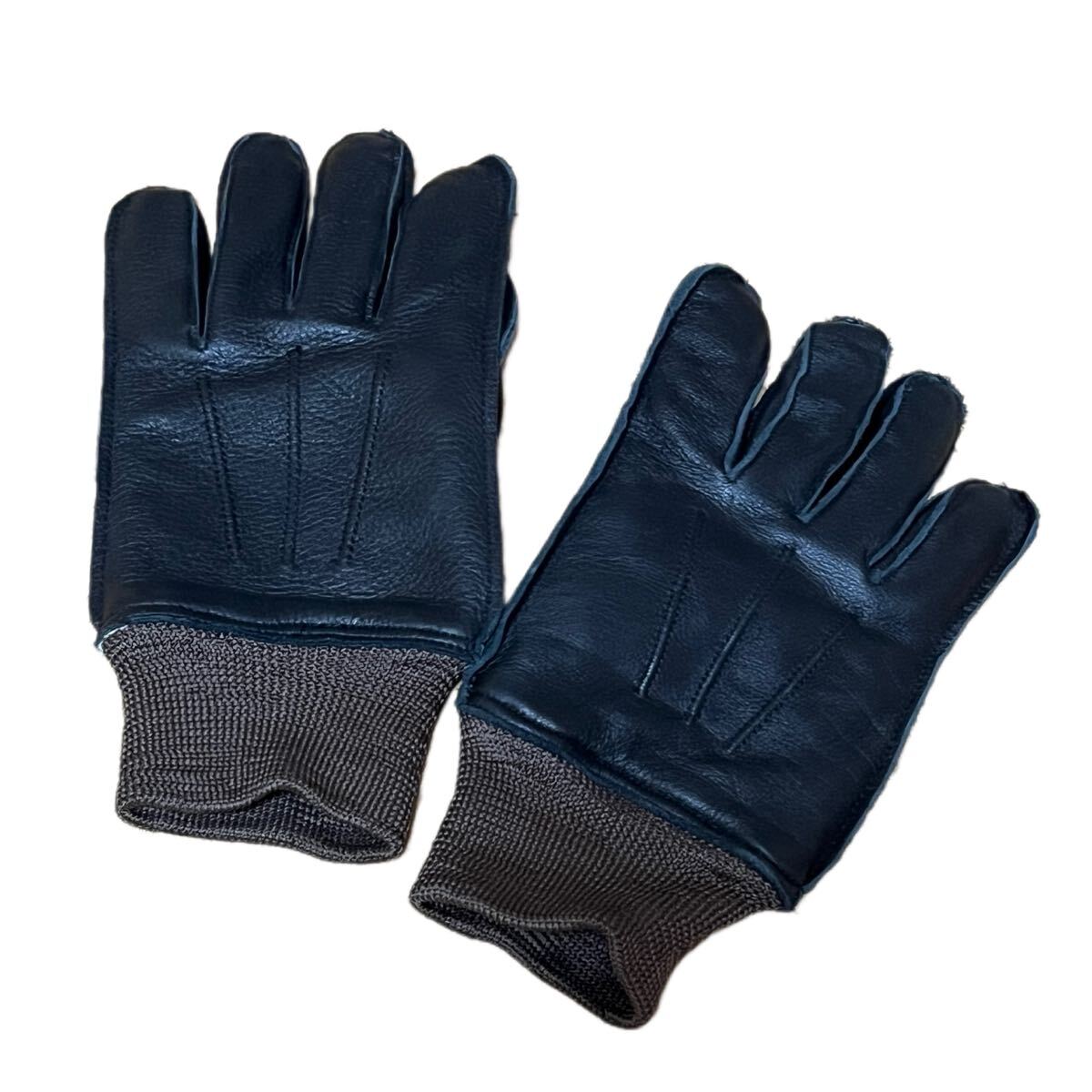 極細ウール糸で編まれた薄手ニット地をライニングに使用する事、手首にはA-2ジャケット同様筒編みリストレットが取り付けられ、又機能性を高めるための指先重視の各指の長さ決定、各指が機能的に動くように工夫をこらしたパターン設計、そして本体には伸縮性に富み、タフであるゴートスキン(山羊革)が使用された。
