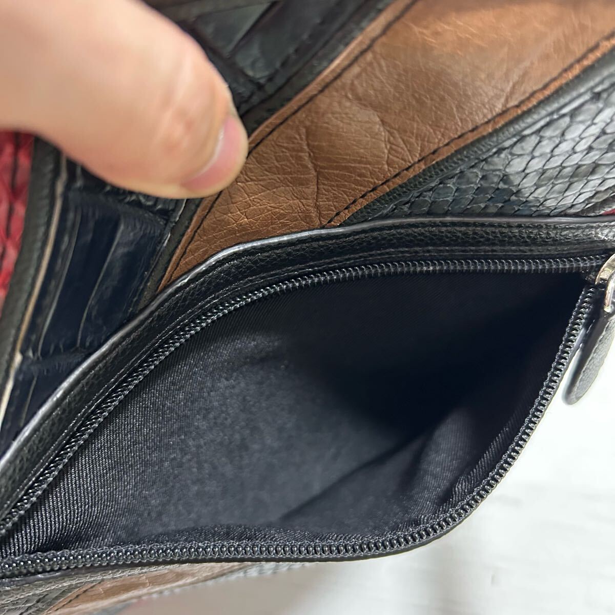 黒色のクロコ部分は牛革の型押しかと思われます。