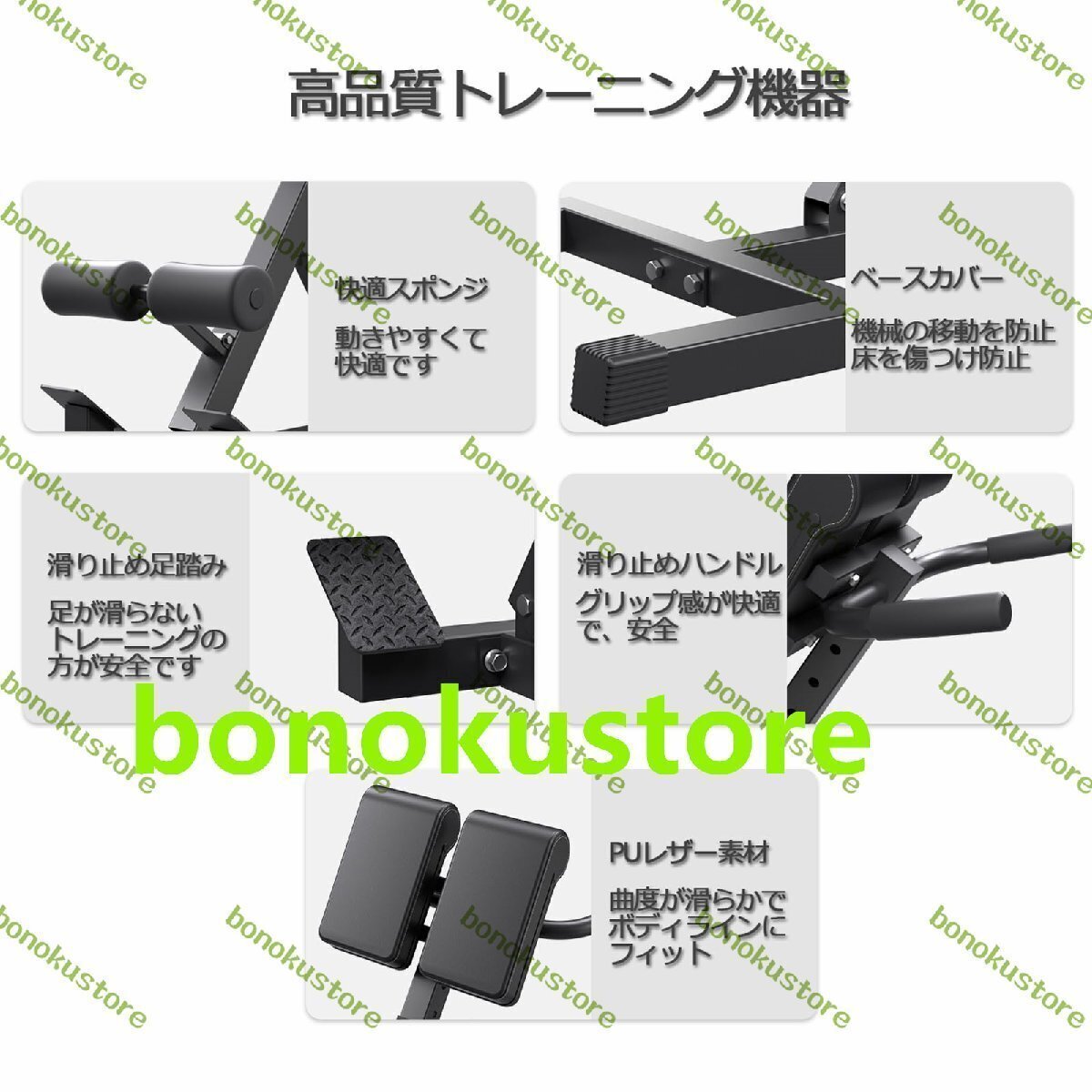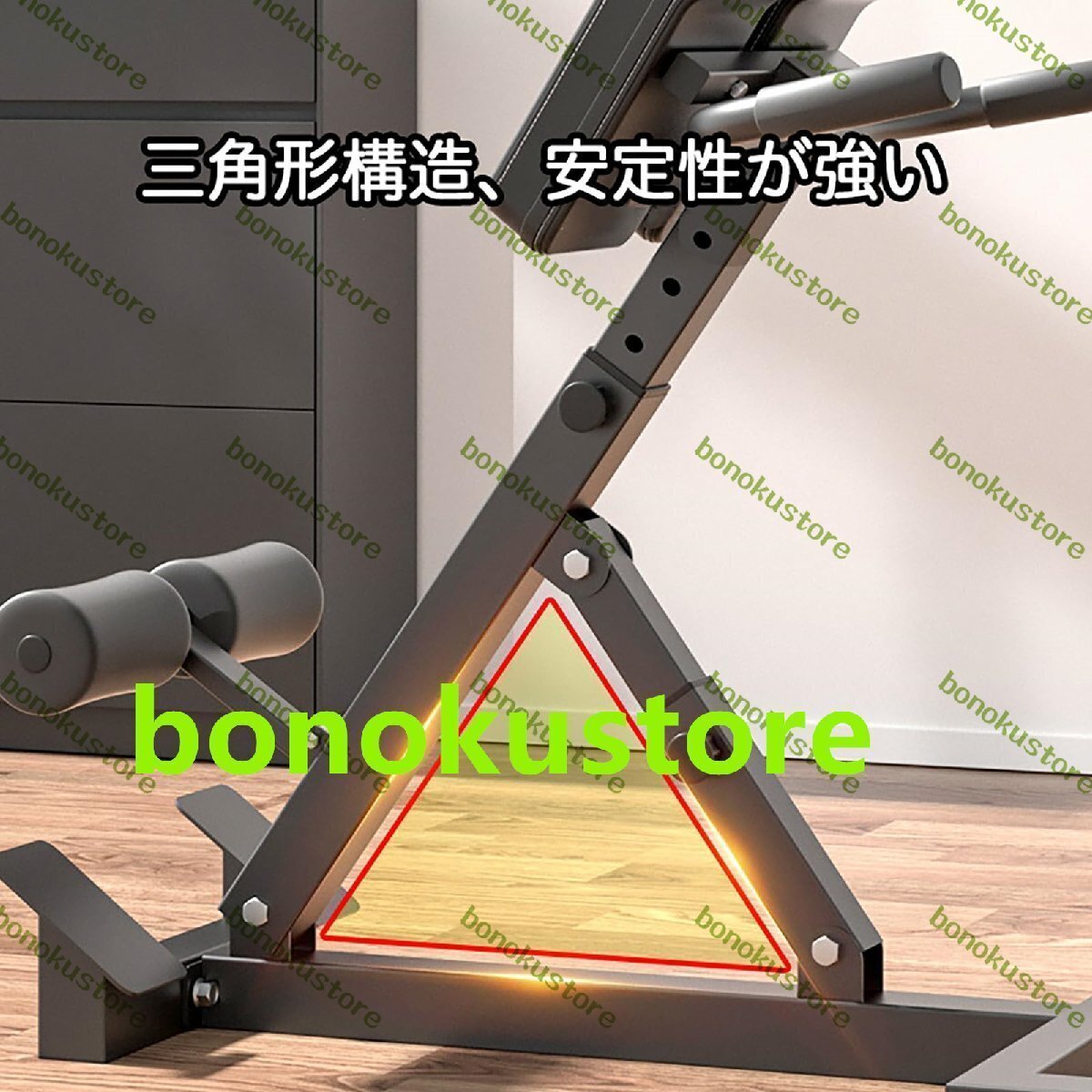 商品説明 商品の説明 本格的な背筋トレーニングが自宅でできるトレーニングベンチ、これ1台で背筋から側腹筋・腹筋強化まで筋トレ可能。・5種類の角度調節・安定性を追求したこだわり設計。・これ一台でバックエクステンション・サイドベント・ディップス・プッシュアップ等
