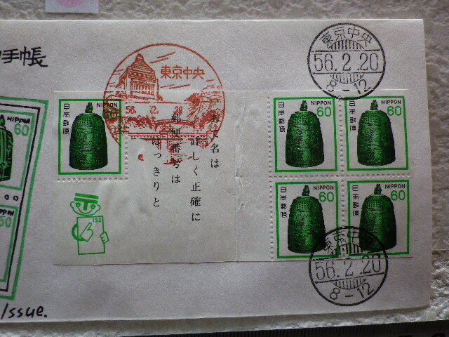 FDC 300円切手帳 平等院梵鐘 1981年 5貼3消 東京中央・普通日付印 解説書無●12●同梱大歓迎