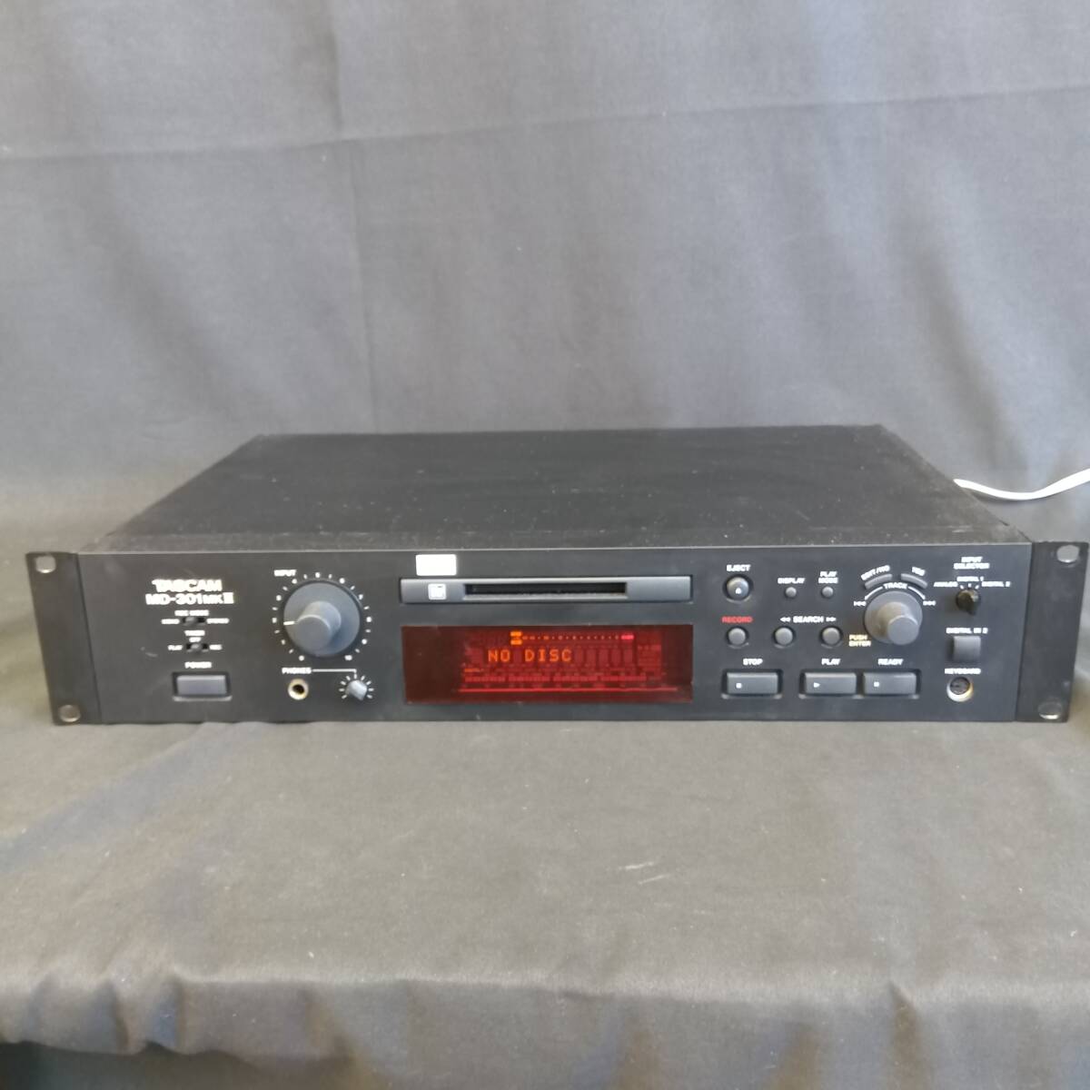 TASCAM MD-301MKIIは、業務用として広く使用されたMD(ミニディスク)レコーダーです。放送局やスタジオ、イベント会場などで採用され、信頼性の高い録音・再生性能を持っています。ラックマウント仕様の2Uサイズで設置しやすく、XLRバランス入出力を搭載しているため、プロ用の音響機材とも高い互換性があります。モノラル・ステレオの切替、シンク録音、プログラム再生など、多彩な機能を備えた堅牢な機材です。現代では希少になったMDフォーマットを扱えるため、過去の録音資産の再生やアーカイブ用途にも最適です。