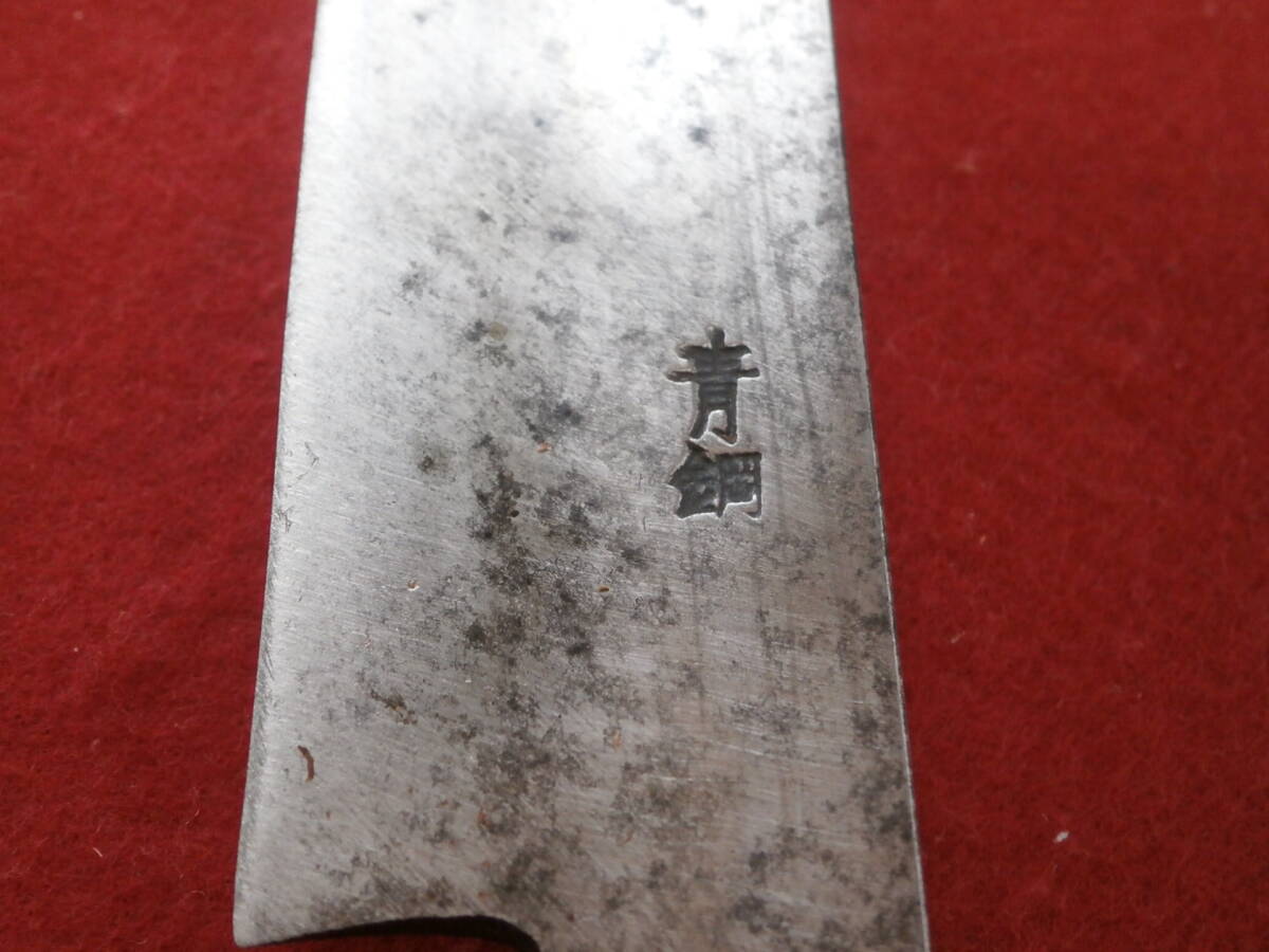 また、写真6枚目のとおり「青鋼」とあります。「青鋼」は安来鋼(やすきはがね)の一種で、高級刃物に使用される鋼です。