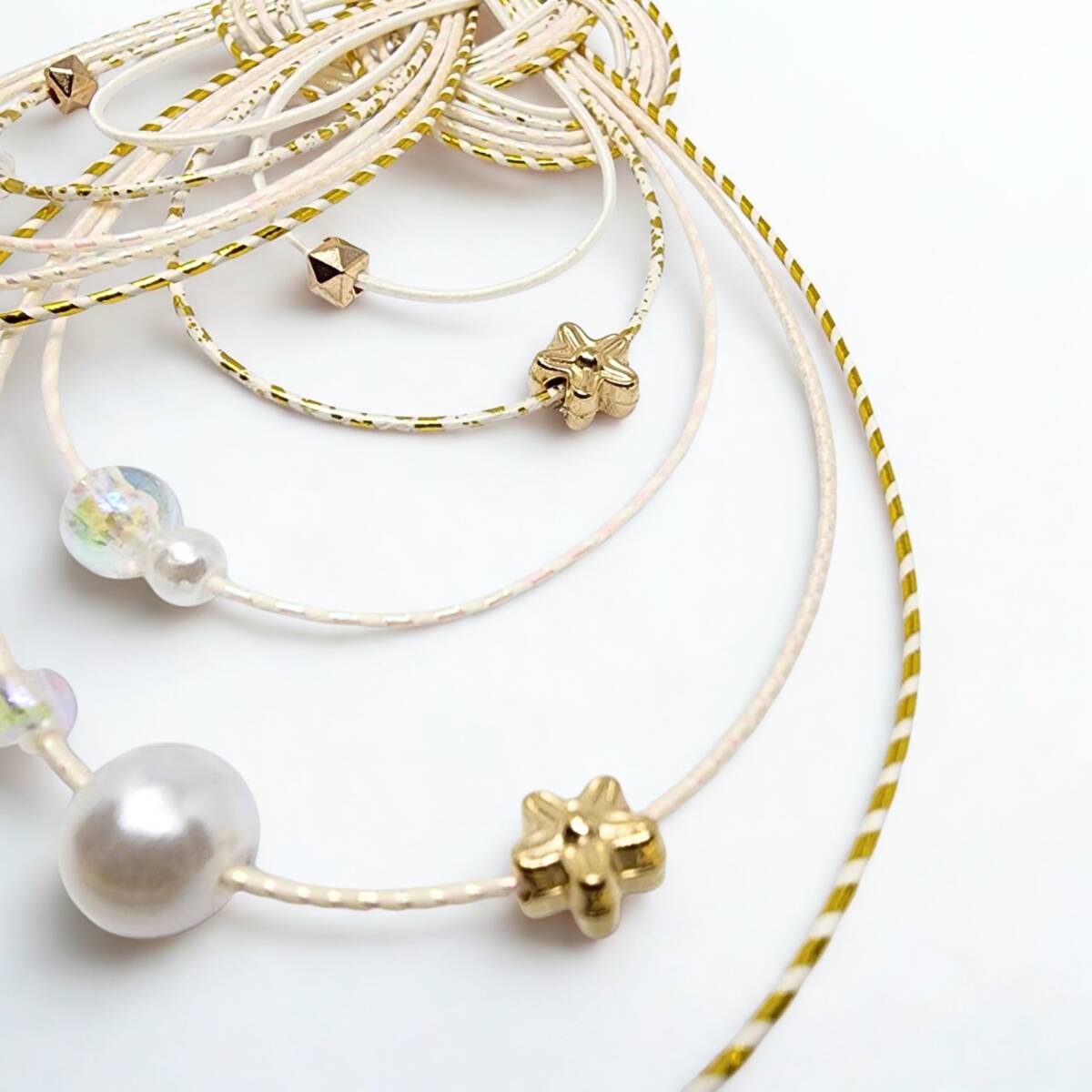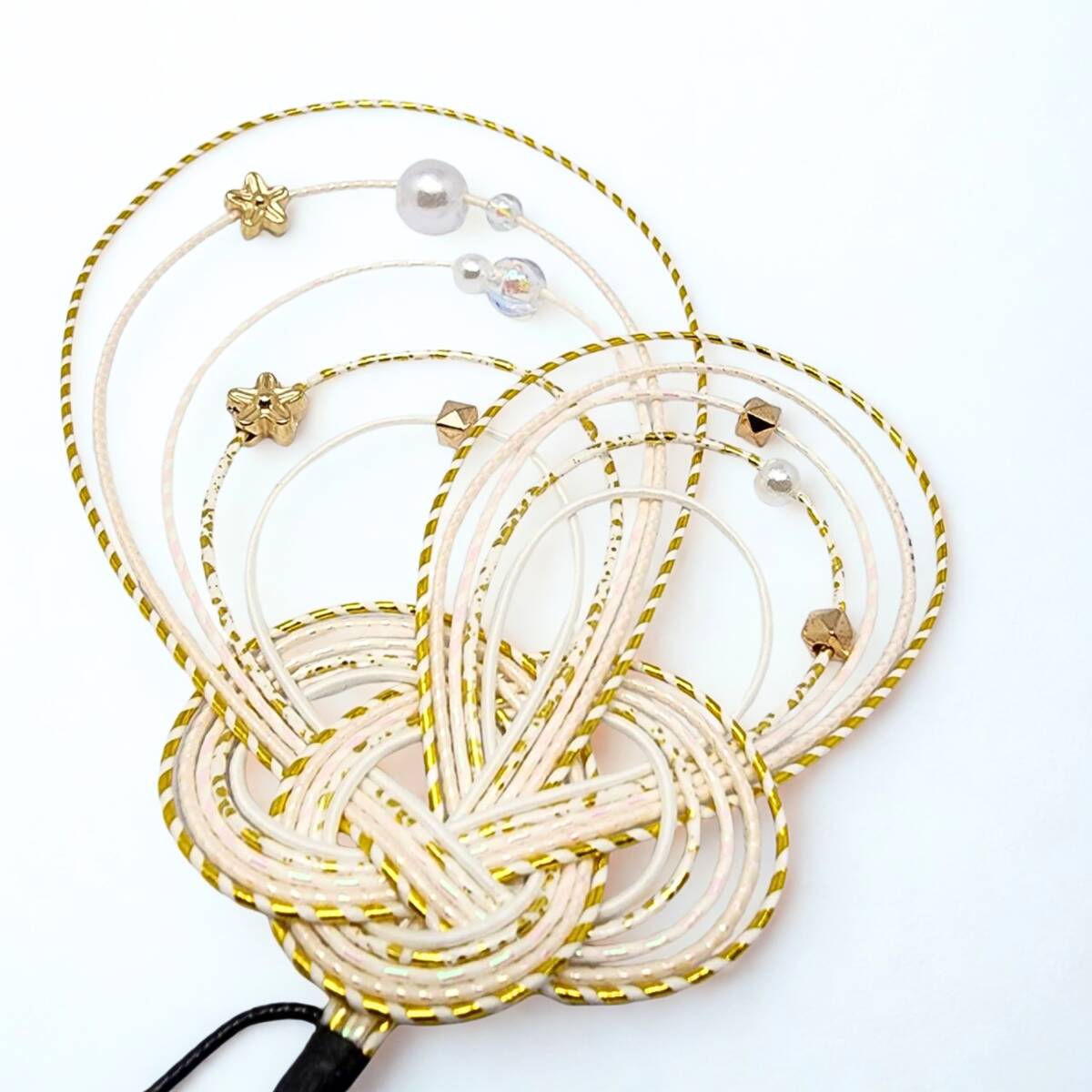 洗練されたゴールド×ホワイトの大人かわいい水引アクセサリーです。