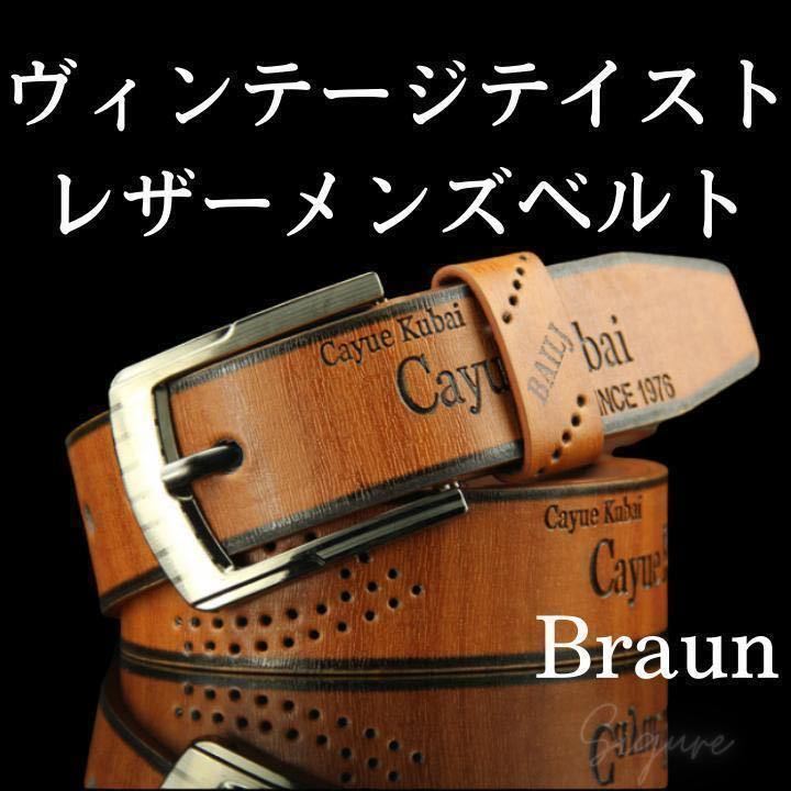 ★英文字が印字された雰囲気漂うヴィンテージテイストメンズベルトです。
