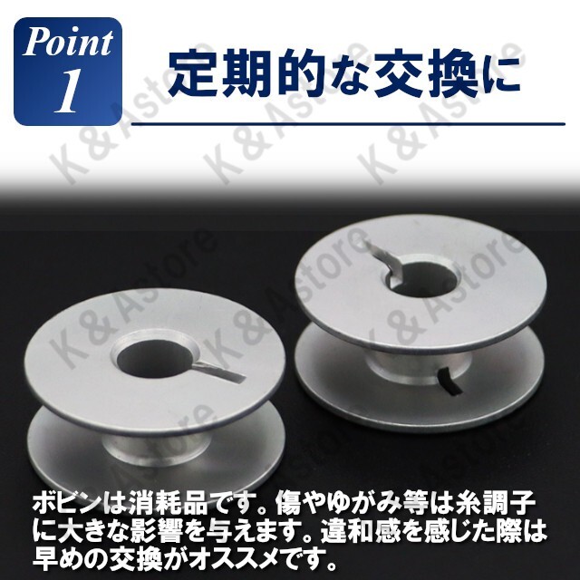 ボビンは消耗品です。傷やゆがみ等は糸調子に大きな影響を与えます。違和感を感じた際は早めの交換がオススメです。