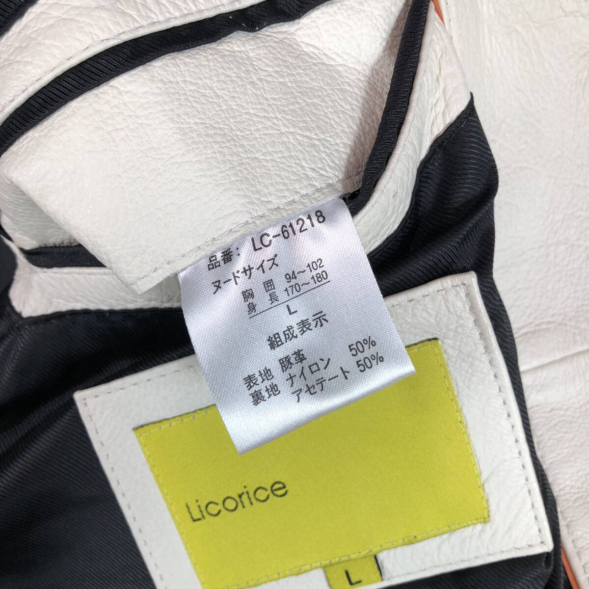 Lサイズ●Licorice リコリス ライダースジャケット ピッグレザー メンズ ブルゾン レザージャケット バイカー 防寒 秋冬 アウター ホワイト