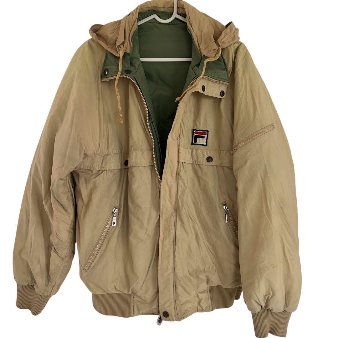 こちらは FILA フィラ リバーシブル ブルゾン シンサレート ヴィンテージ リブ袖になります。ベージュとベージュ×カーキのリバーシブル。襟元に収納可能なフード付き。
