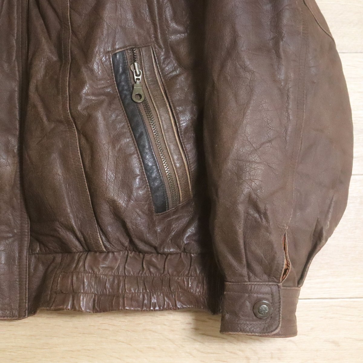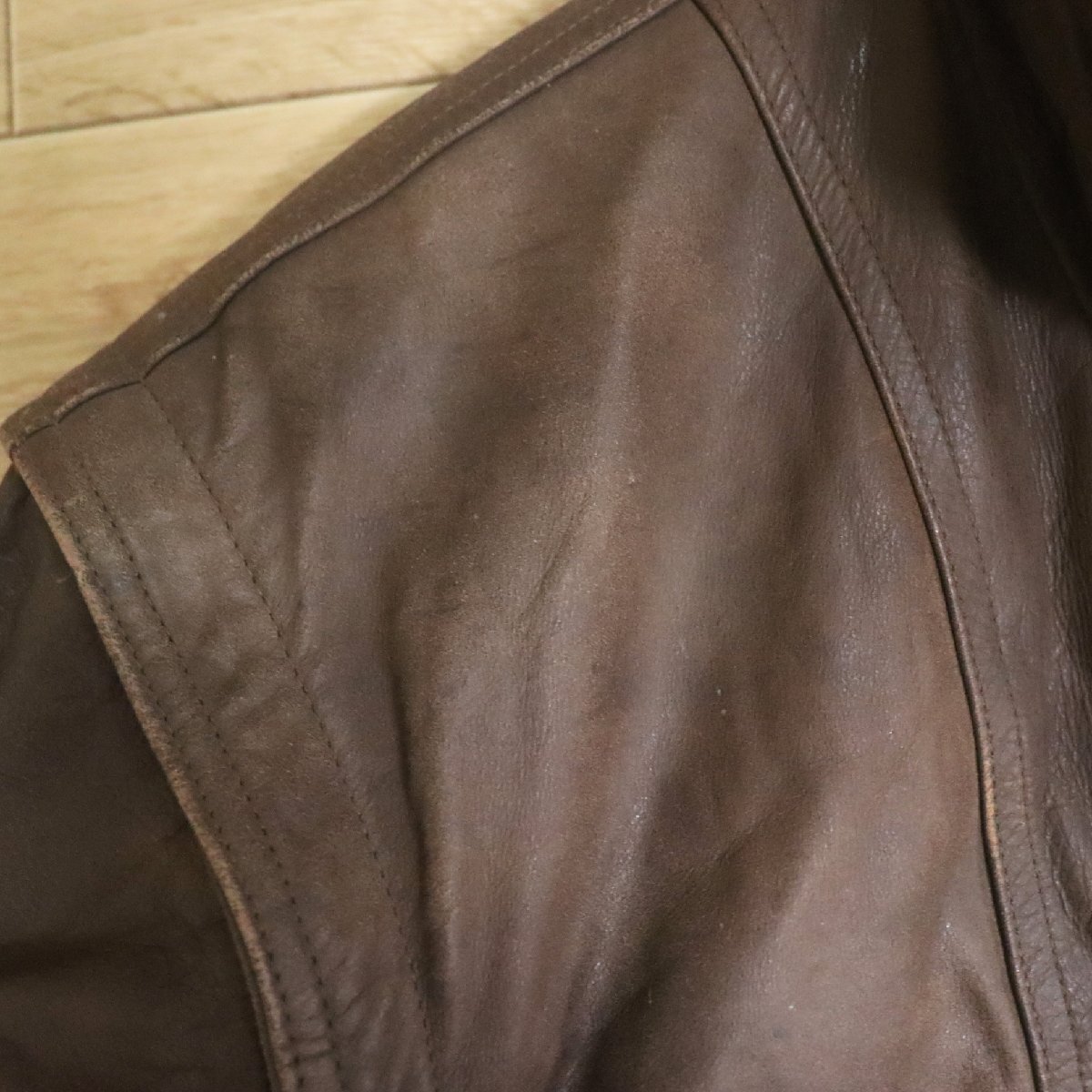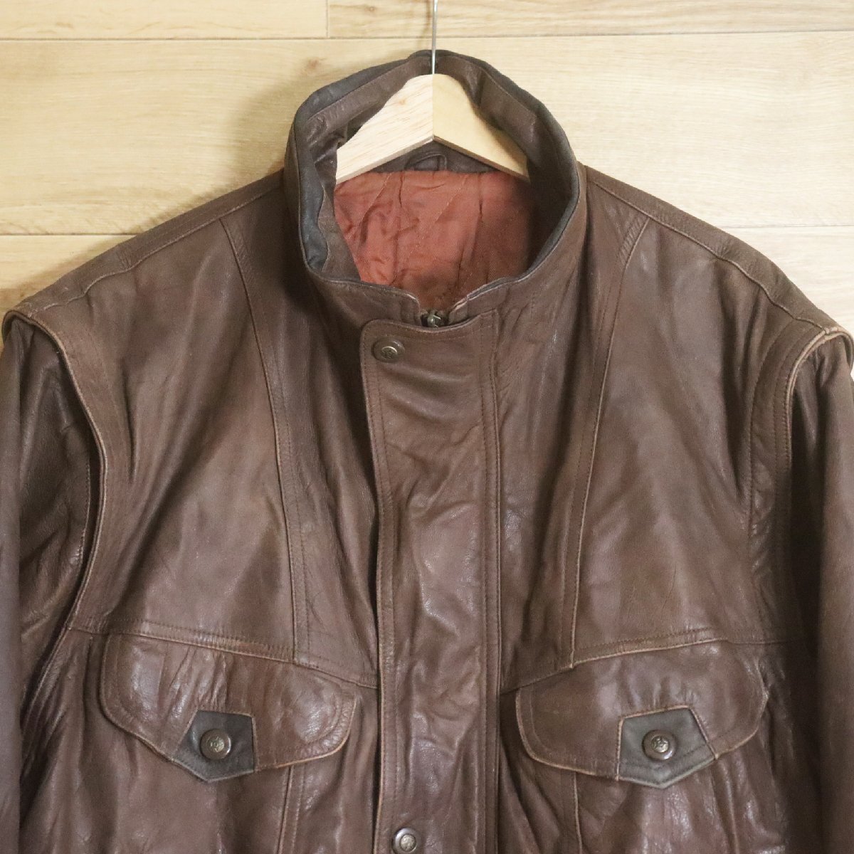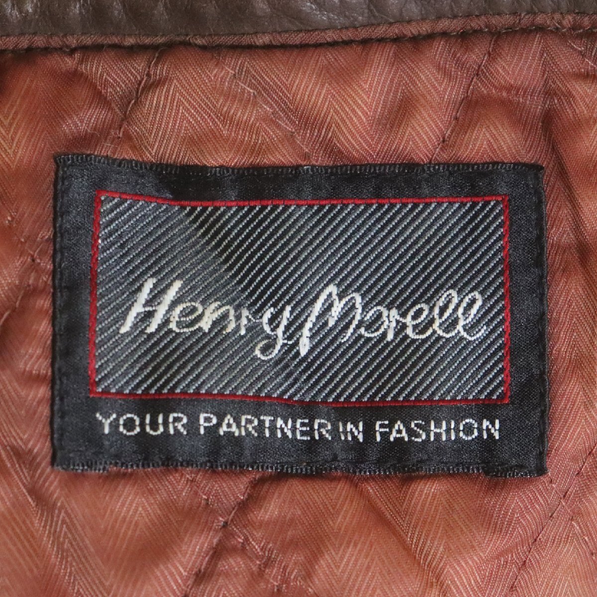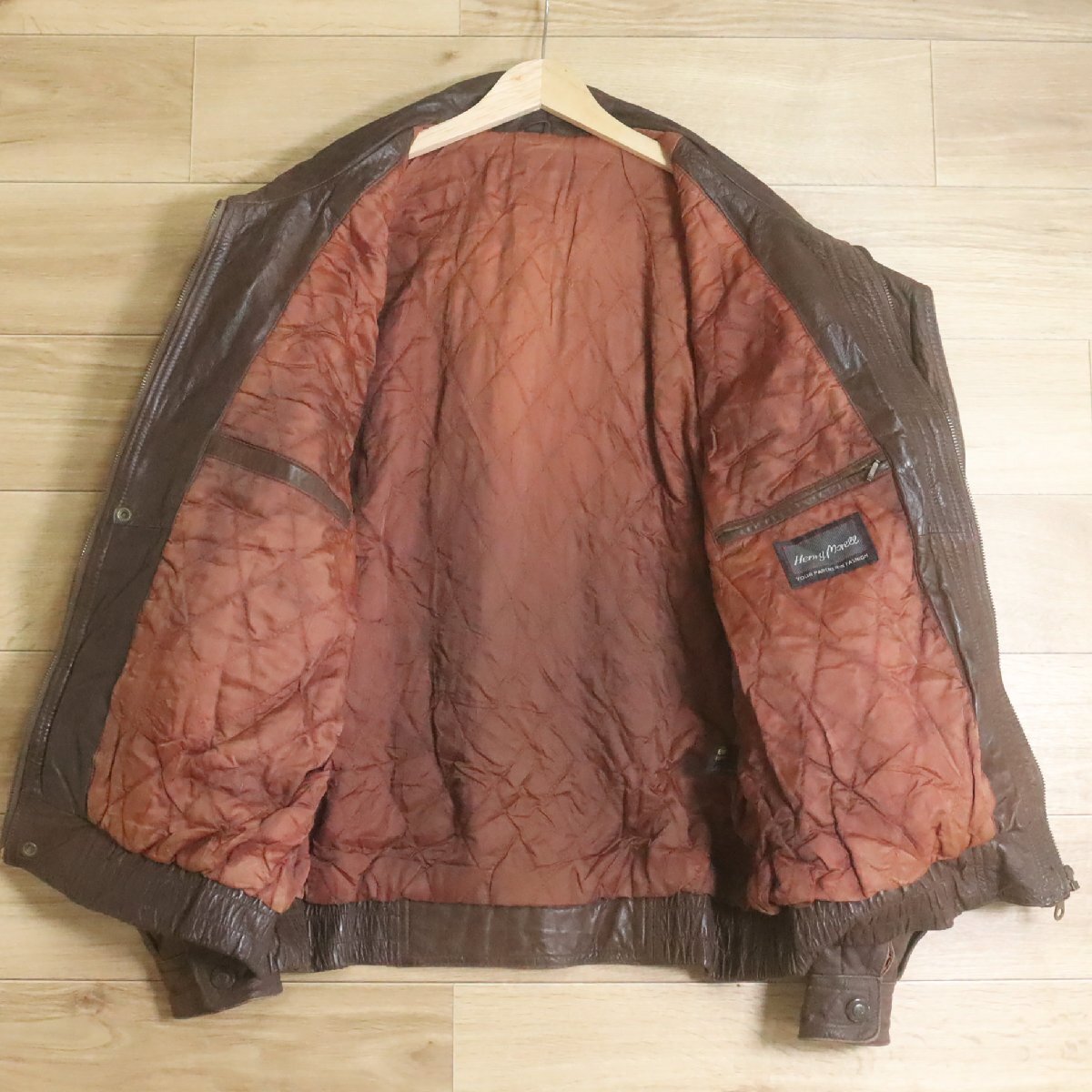I7S/O8.25-5 Henry Morell 本革 レザージャケット 2way 袖脱着可 レザーブルゾン 革ジャン 皮ジャン メンズ 26 ブラウン 古着