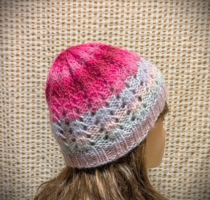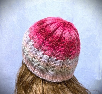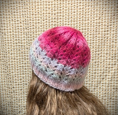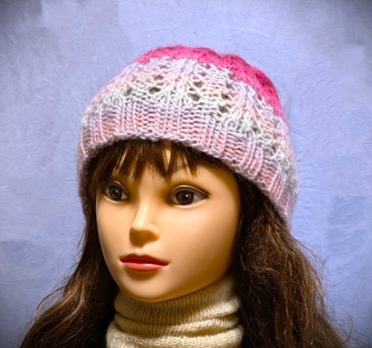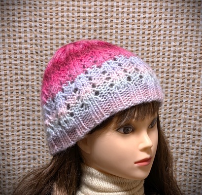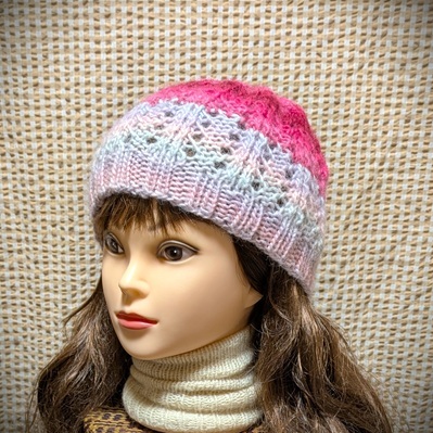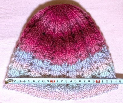 母手編み◆ウール100%◆ピンク系+紫・ブルーMIX◆ふんわり*ニット帽/ビーニー◆帽子◆ハンドメイド◆送料込