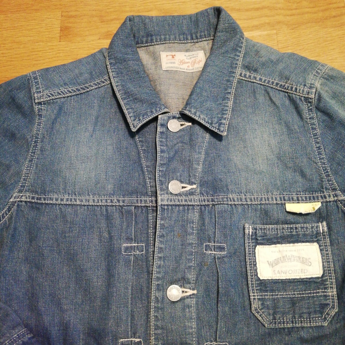 Adam etRopeが、日本初のデニム生産で知られるBIG JOHNが運営する、1975年にスタートした日本のワークウエアブランドWorld Workersに別注したデニムジャケット。