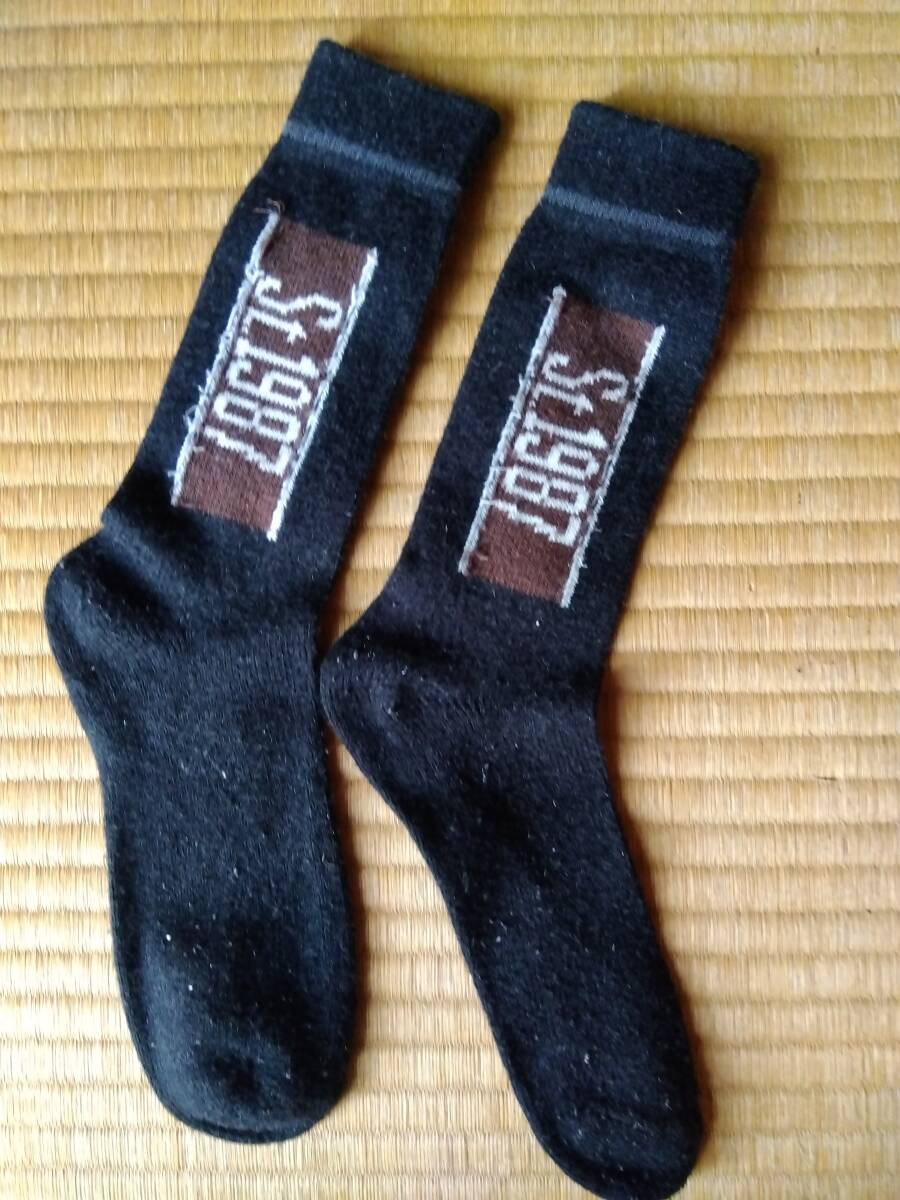 中古のメンズ用のソックス2足です。サイズはマンシング(ペンギン印)は25~27ですが、もう1点(St1987印)は不明ですが、恐らく同じサイズと思えます。