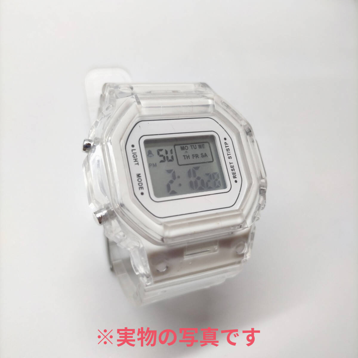 スケルトン防水軽量シンプルデザイン スポーツウォッチ デジタル腕時計レディース くすみカラー ホワイト白 (G-shockではありません)