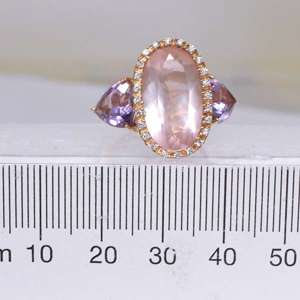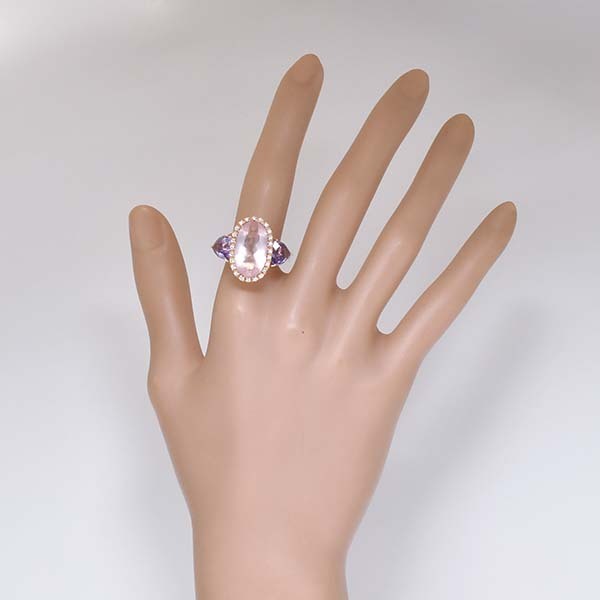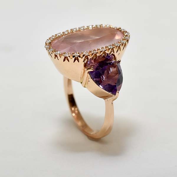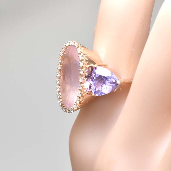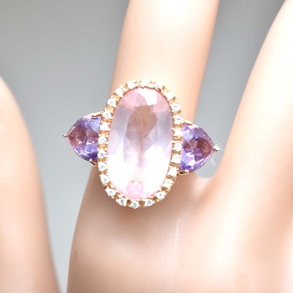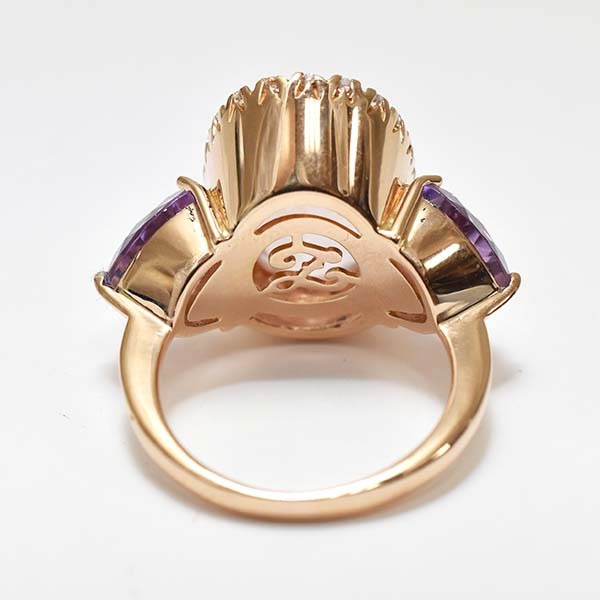 ローズクォーツをメインにしたゾッカイの18金ピンクゴールド製ファッションリング。