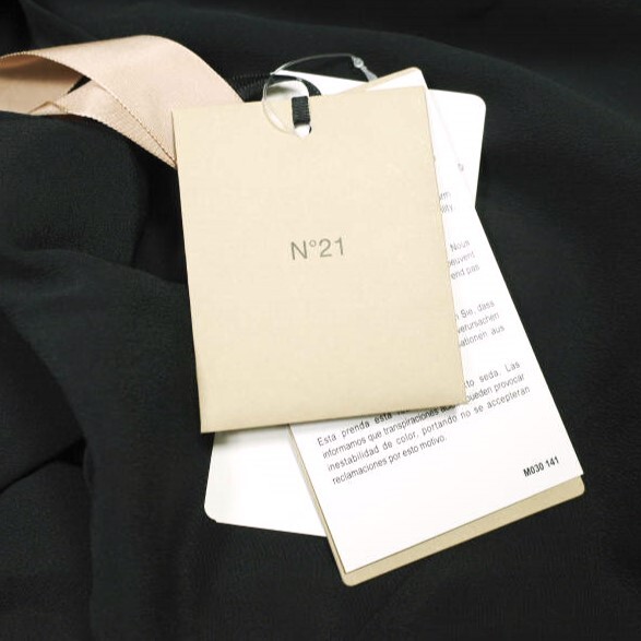 新品 N°21 ヌメロヴェントゥーノ 23SS アセテートシルク オープンネックブラウス 23S-G041-5111 40 BLACK 定価64,900円 長袖 シャツ