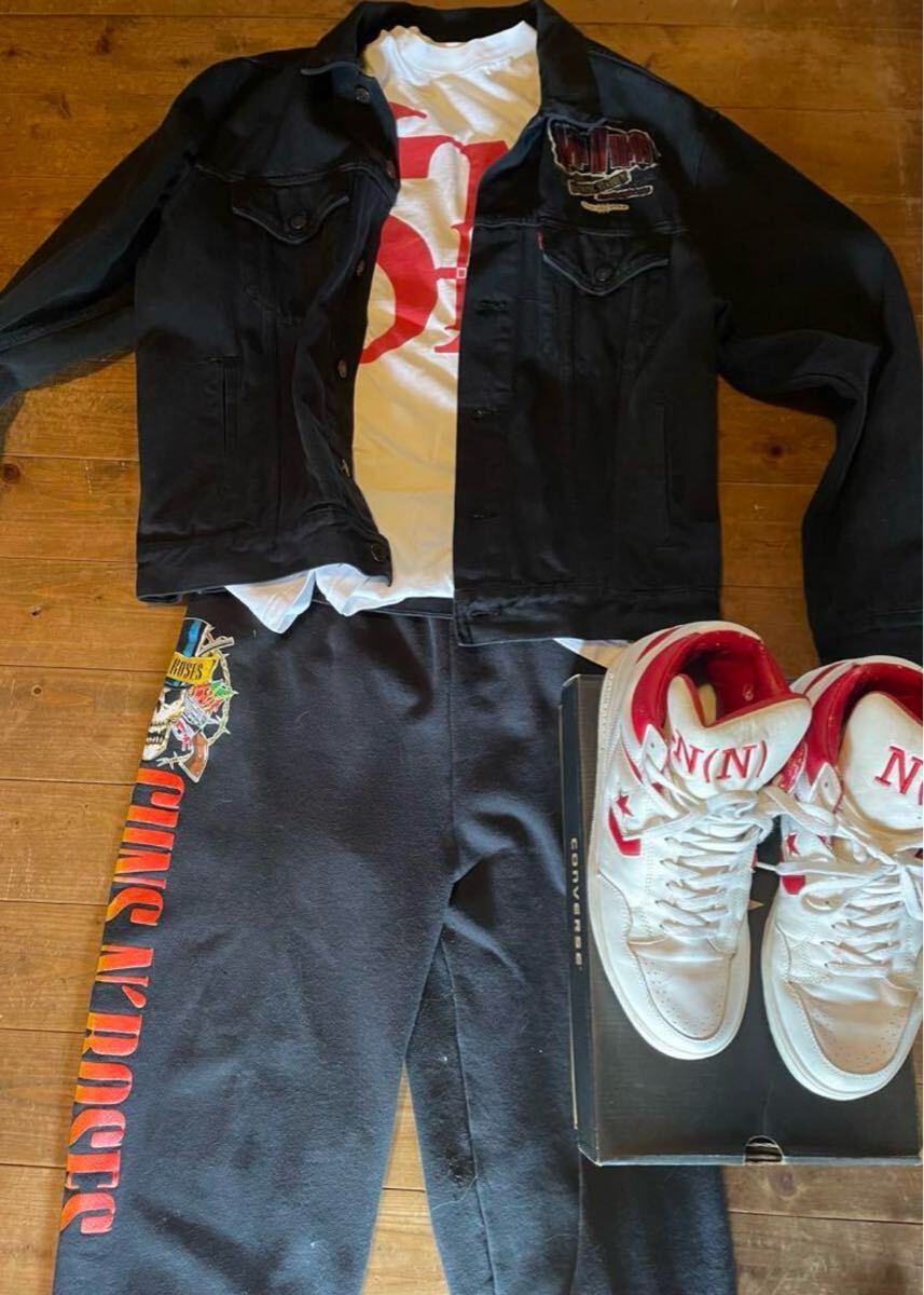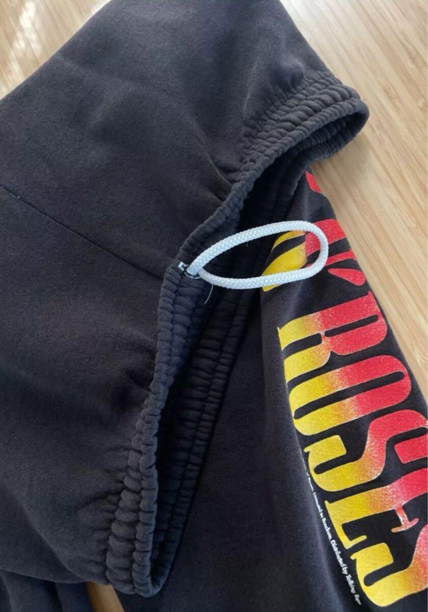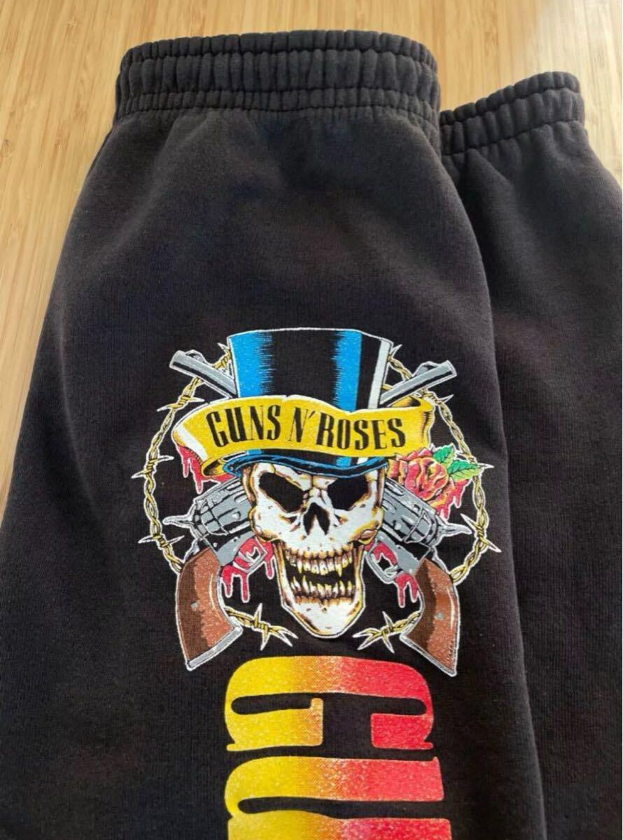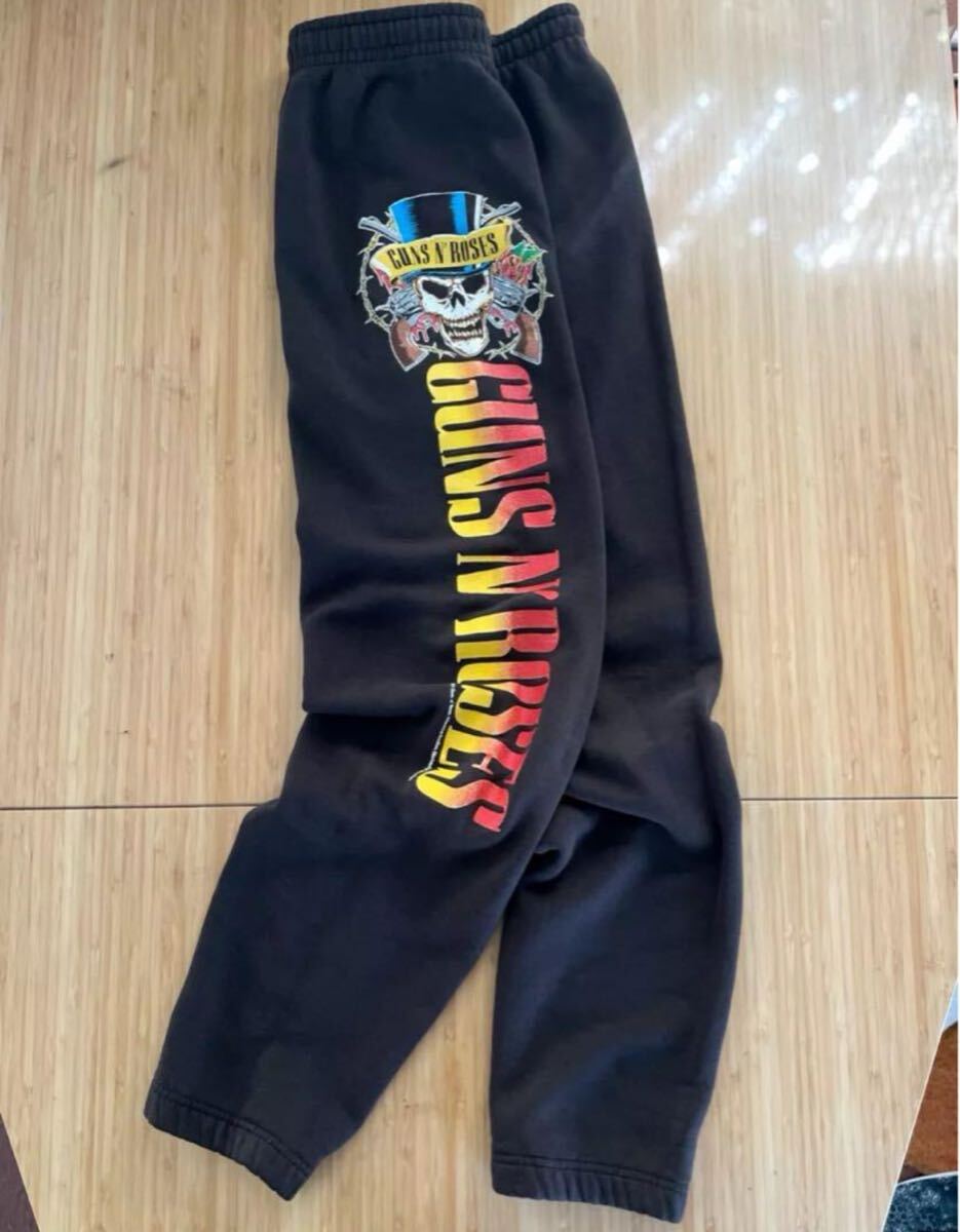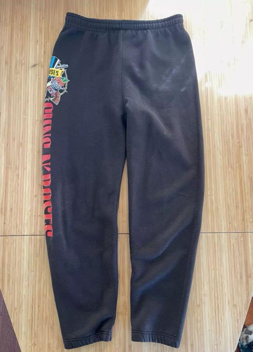 vintage 90s guns n roses スエットパンツになりますサイズは90年代のフルーツオブザルームのMウエスト37×2紐で調整可能) 総丈96になります(素人採寸です多少の誤差はご了承下さい)是非ご自分のガンズコーデに合わせてみて下さい(画像8.9.10)プロフ必読よろしくお願い致します