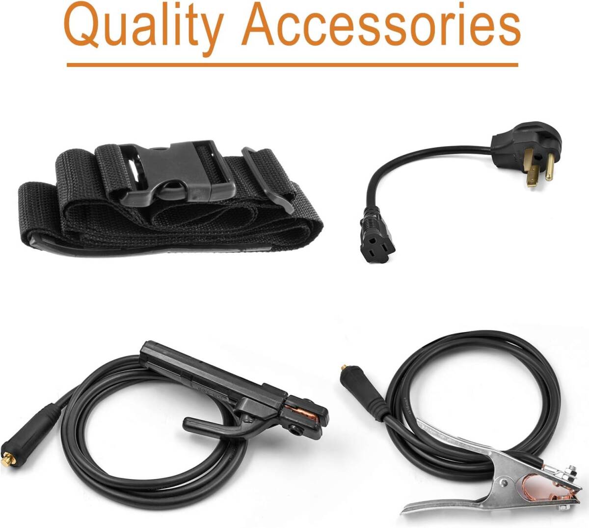 付属品として、アーク溶接接地クランプ、溶接棒ホルダーケーブル、変換ラインアダプターが含まれています。また、PDF版の日本語説明書も提供しており、製品購入ページからダウンロードできます。