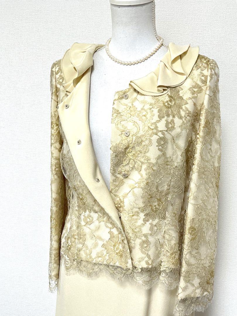 ジャケットは豪華なレースを重ね上品で格式があります。