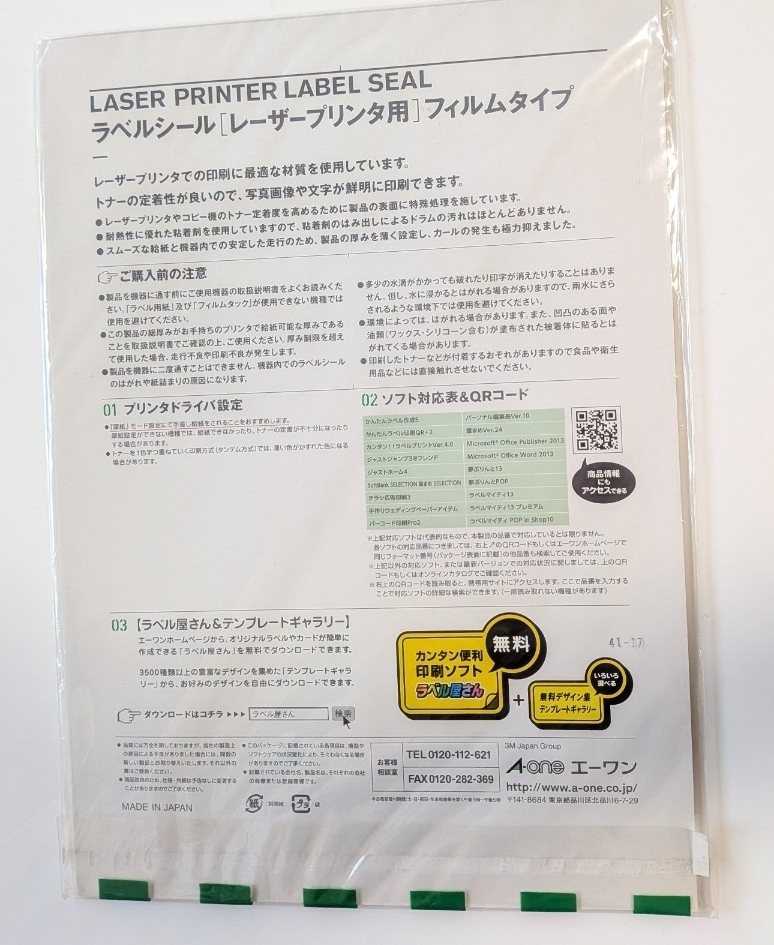 ・NYPラベル キレイにはがせる マット紙 ノーカット 10シート 31271 ホワイト(836円) 2シート+1パック(10枚)