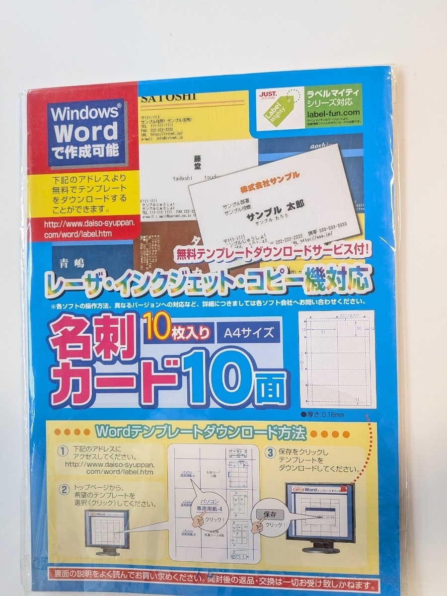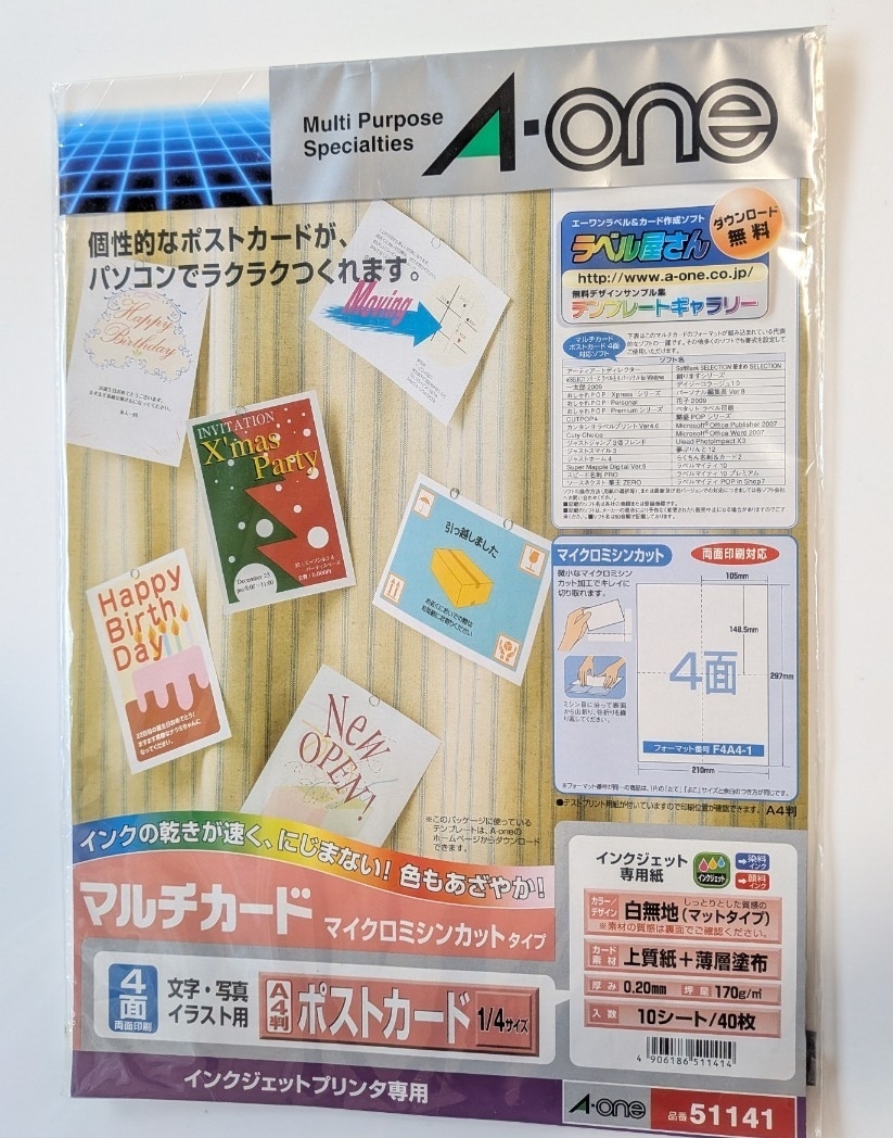 エーワン マルチカード A4判 1/4サイズ4面 両面印刷 1パック
