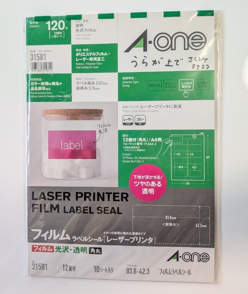・レーザー 光沢フィルム 透明 12面 10シート 31581(1,273円) 8シート