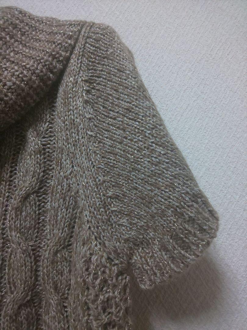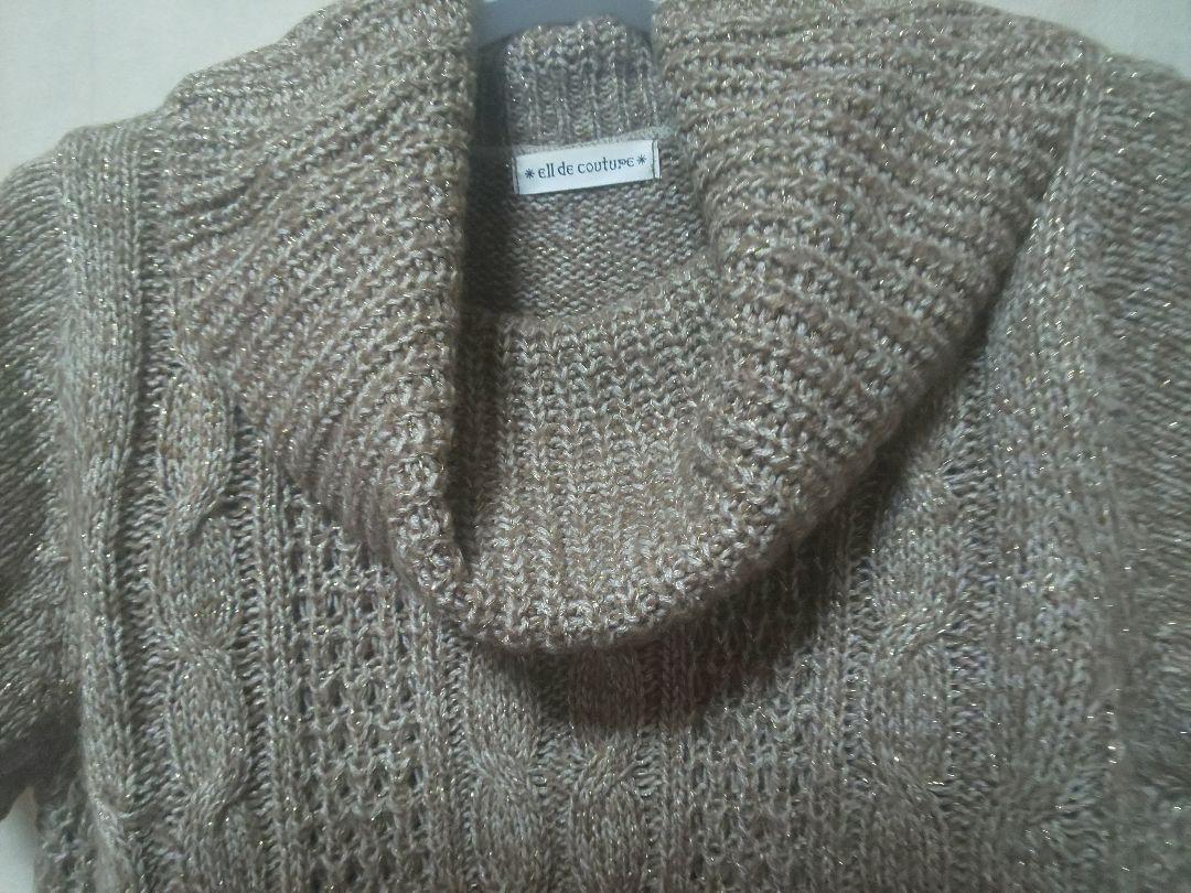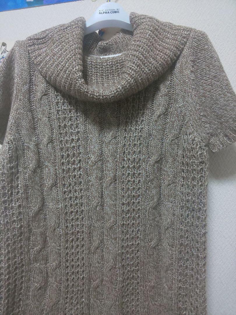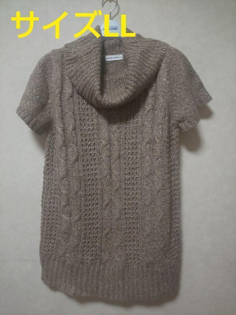 【美品】オフタートル★半袖ニットチュニック★ LL★ブラウン
