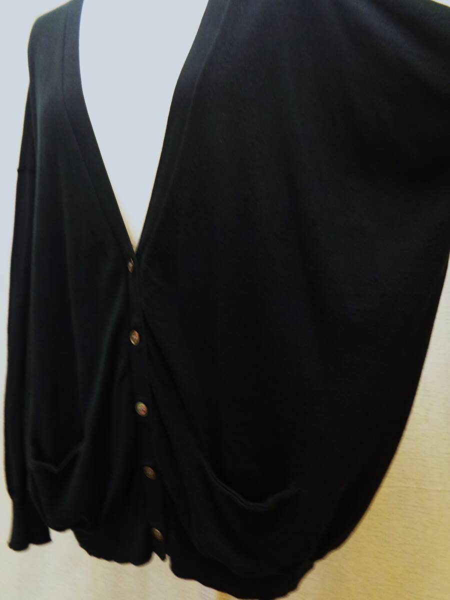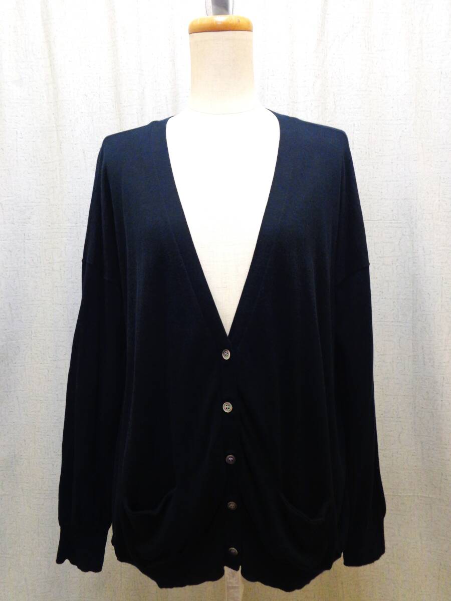 ◇◇『ズッカ』:ネイビーの麻混カットソー素材、オーバーサイズシルエットのカーディガンです。 V開き・釦フロント、前裾にタック入りでドレープのでるシルエットになります。