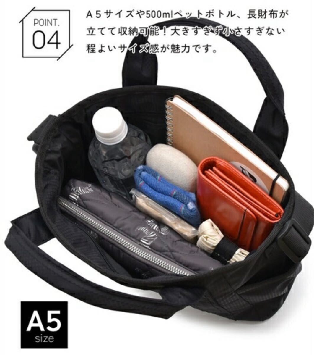 使いやすい2WAYミニトートバッグ。天ファスナー付き。