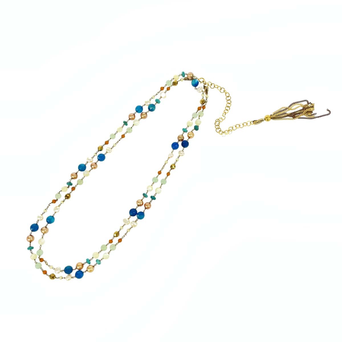 ネックレス ムーンストーン×アゲート×トルマリンクオーツ×ラブラドライト |