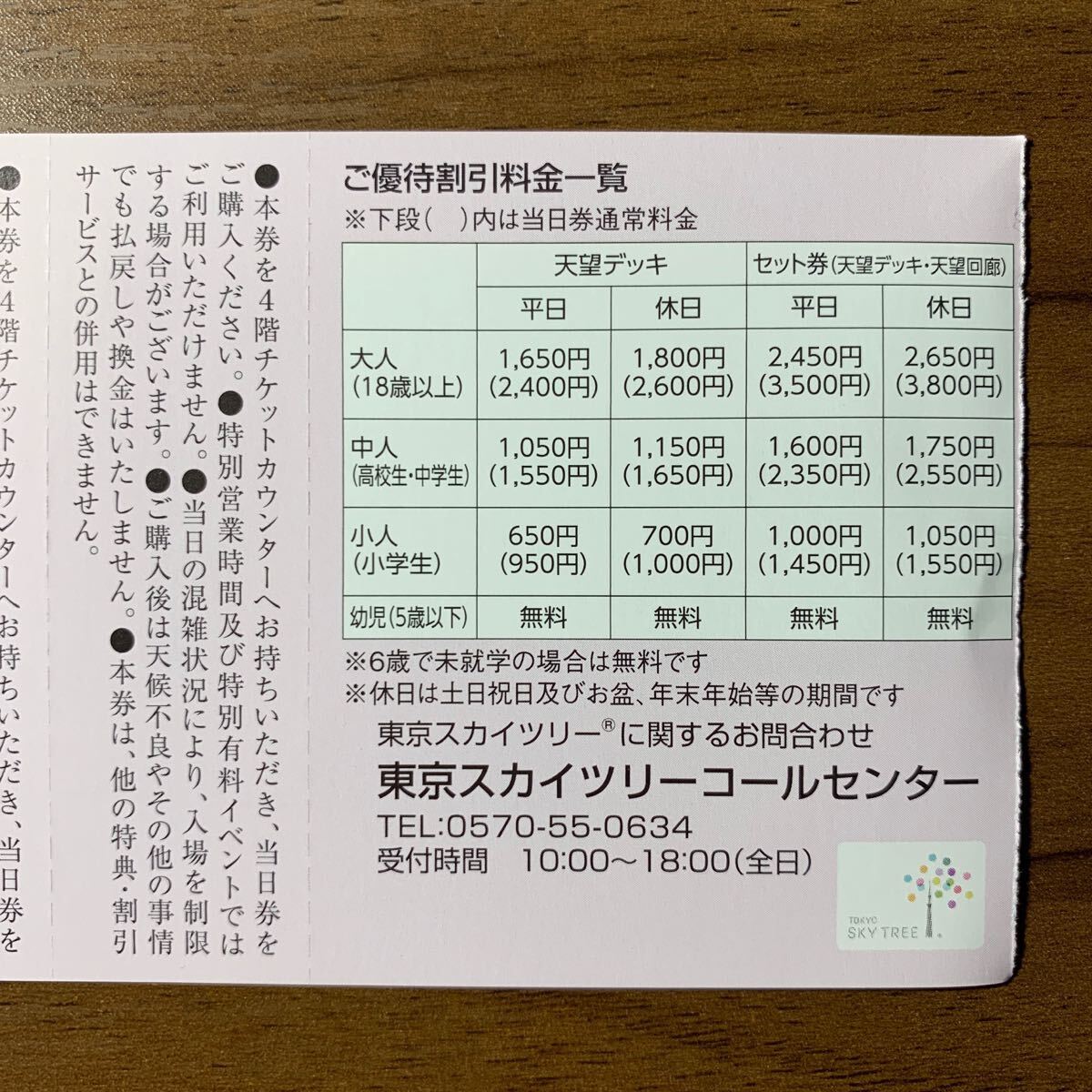 東京スカイツリーでご利用頂ける当日券の割引券5枚セットでございます。