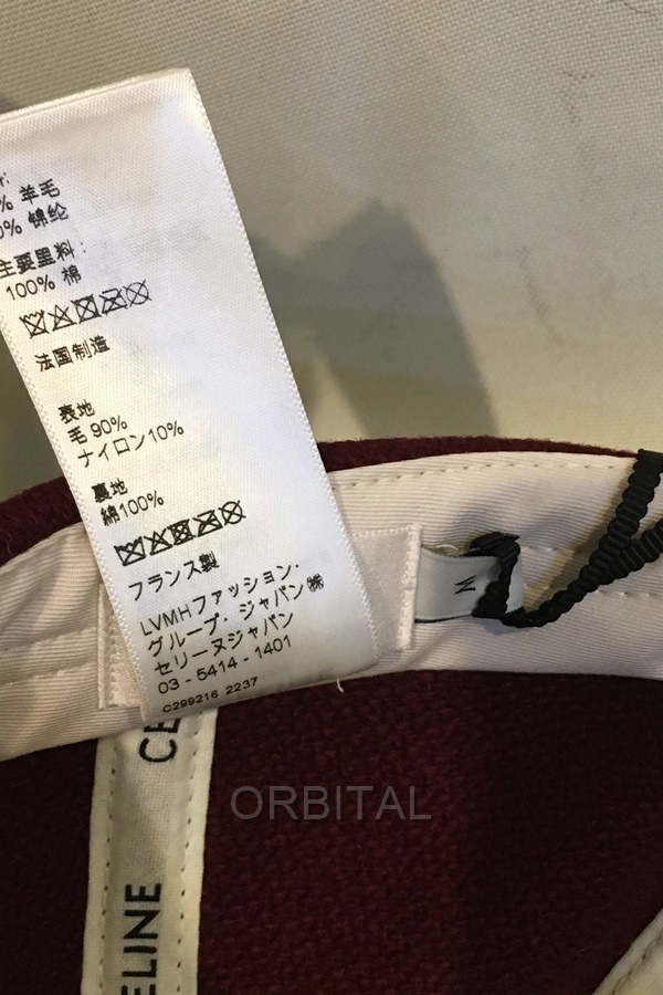 二子玉) CELINE セリーヌ 未使用 イニシャルロゴベースボールキャップ ウール ワインレッド 2AUU3896C 帽子 サイズM