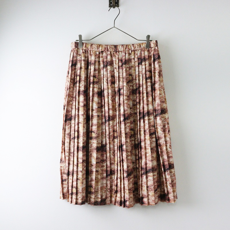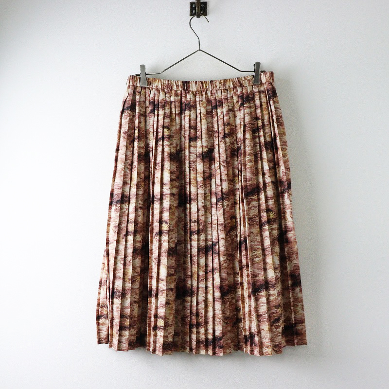 大きいサイズ オンワード樫山 ニジュウサンク 23区 ジオメトリック プリーツスカート 46|ベージュ【2400014616682】