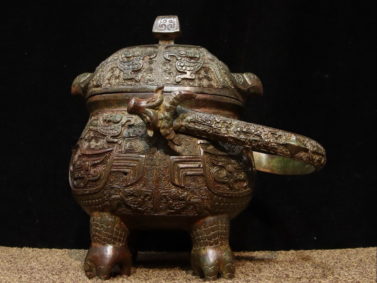 「商周時期 青銅器彫 銘文青銅鷹提梁鹵」青銅器 置物擺件 賞物 中国古美術 旧蔵出