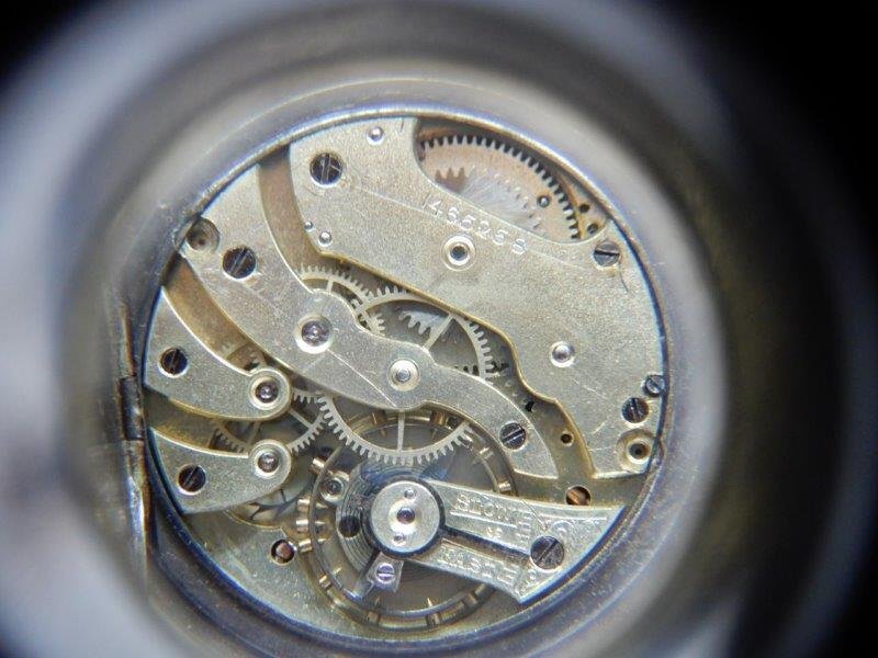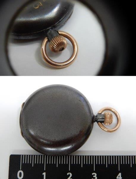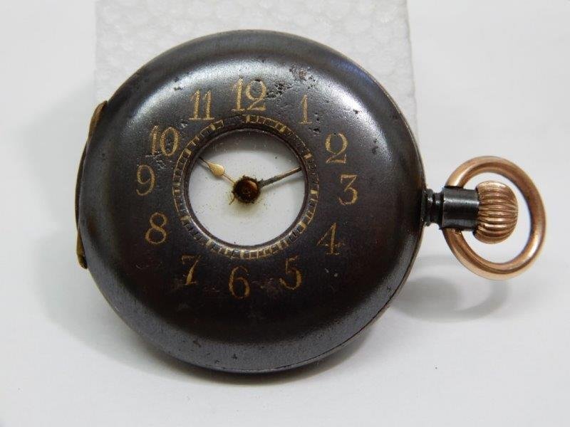 不動の鉄ケースの懐中時計の風防が外れ易くなっております。