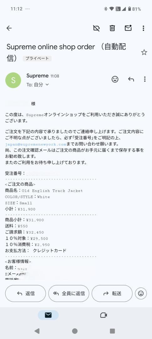 値下げ【即決/送料込】Supreme Old English Track Jacket "White" S シュプリーム トラックジャケット