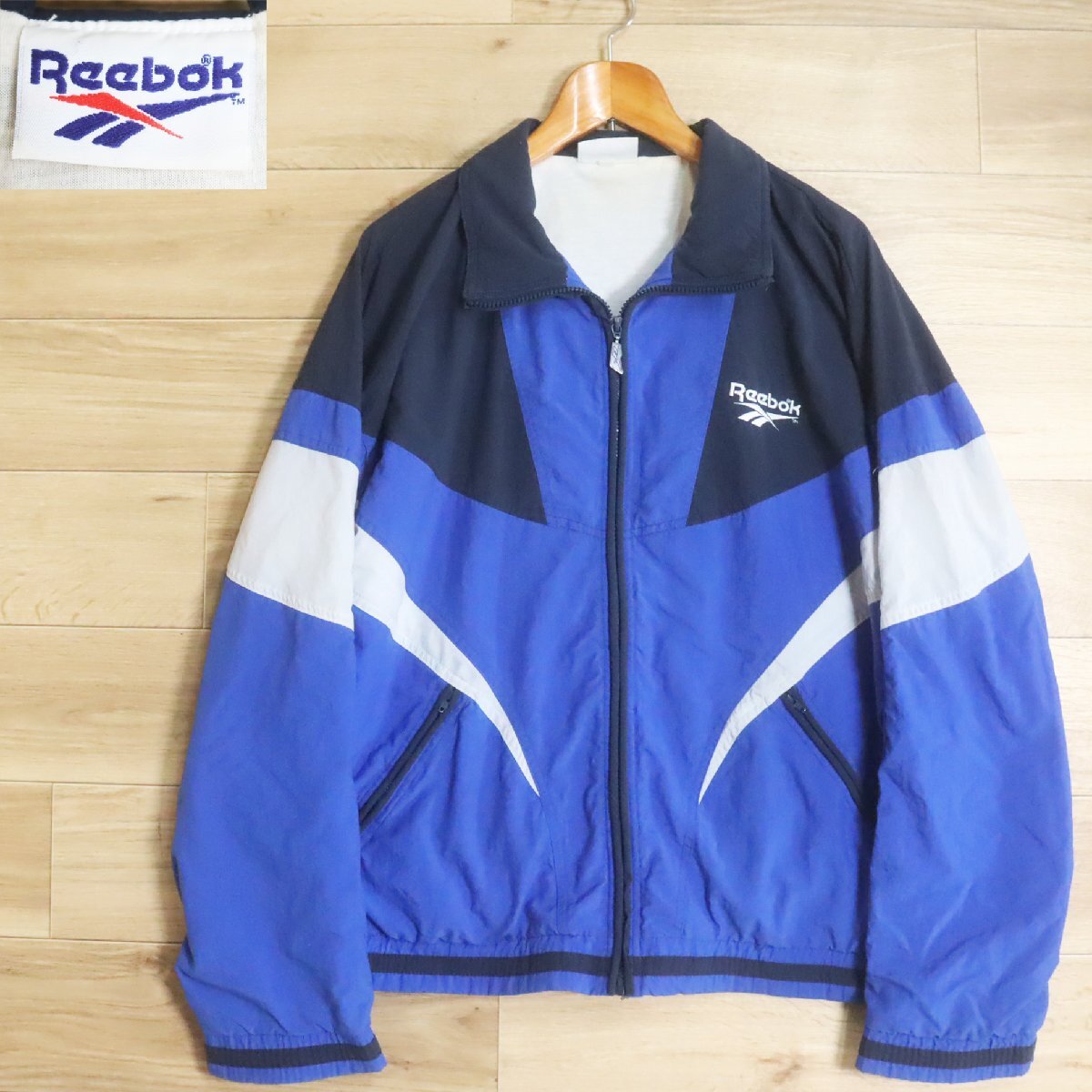 I1S/R8.6-4 Reebok リーボック ナイロンジャケット ウィンドブレーカー ジャンパー ブルゾン スポーツウェア L ブルー系 古着