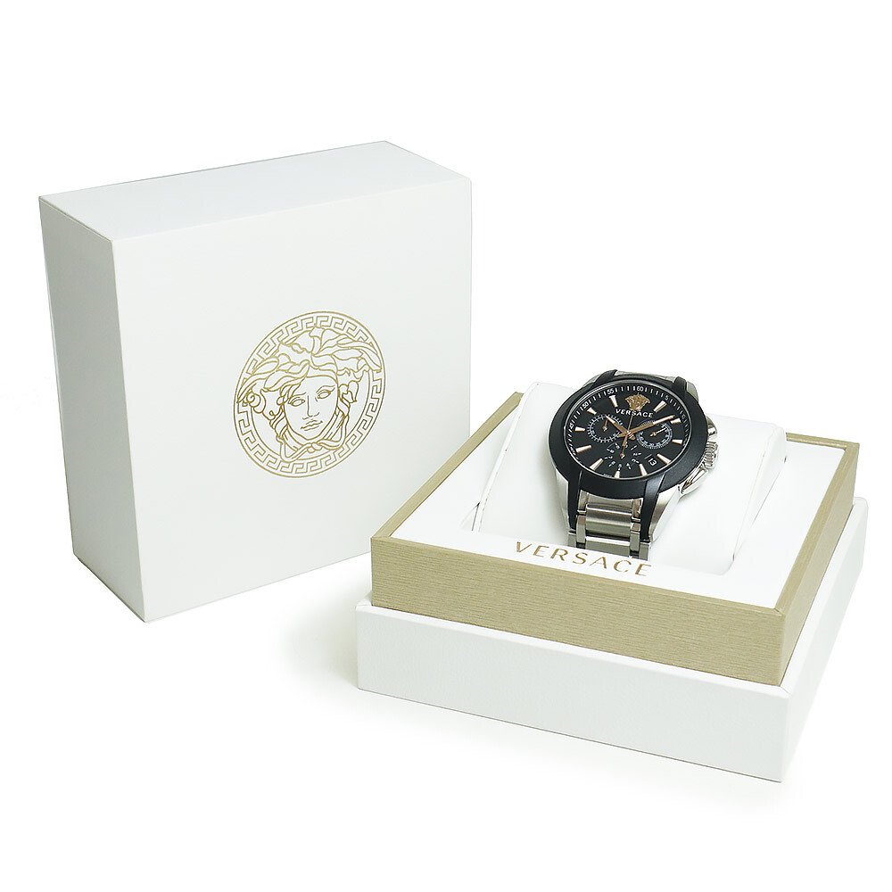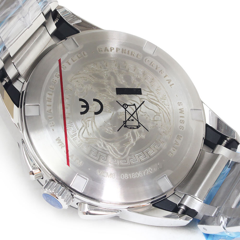 (新品・未使用品)ヴェルサーチ VERSACE キャラクター クロノグラフ クオーツ 腕時計 シルバー ブラック 黒 VEM800218 箱付
