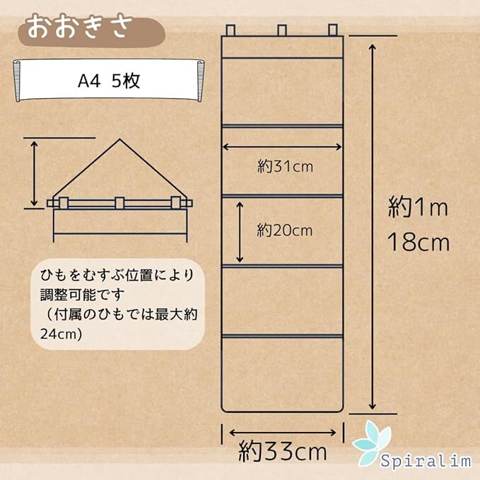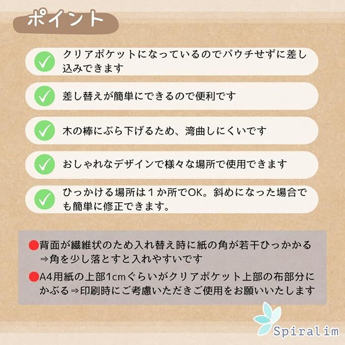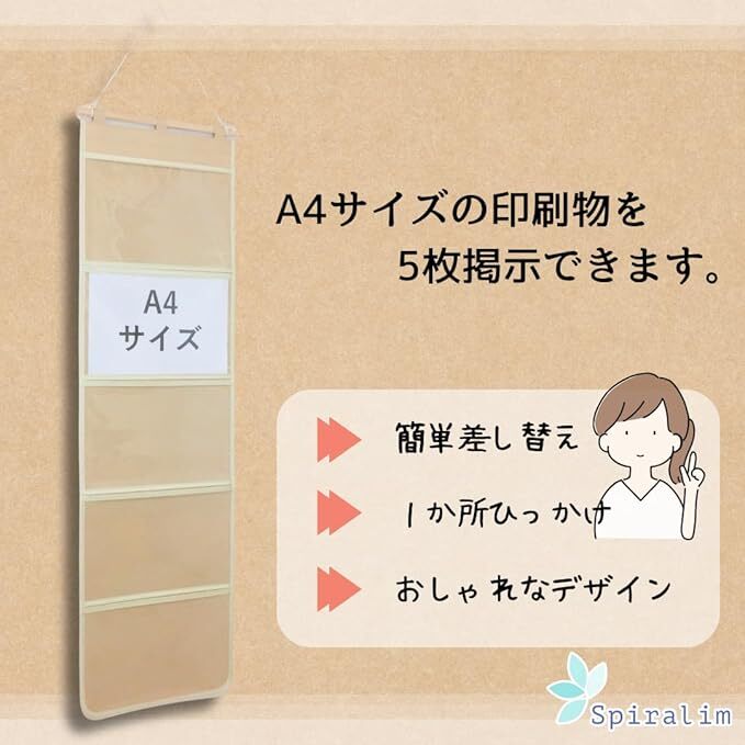 Amazon | Spiralim 壁掛 メニュー 掲示 マチなし 吊り下げ A4 プリント ウォール ポケット ホルダー (5枚タイプ)