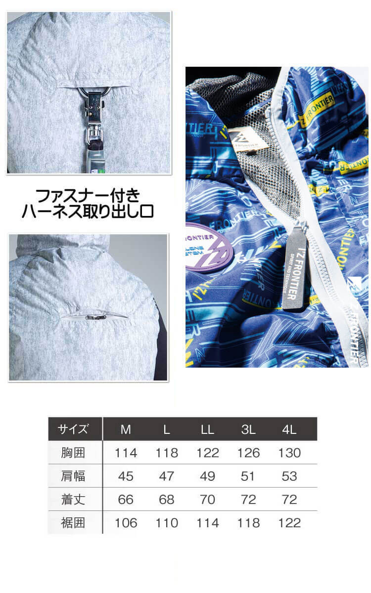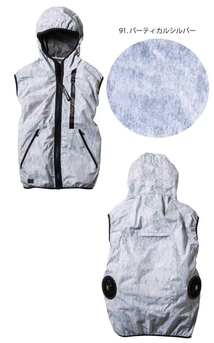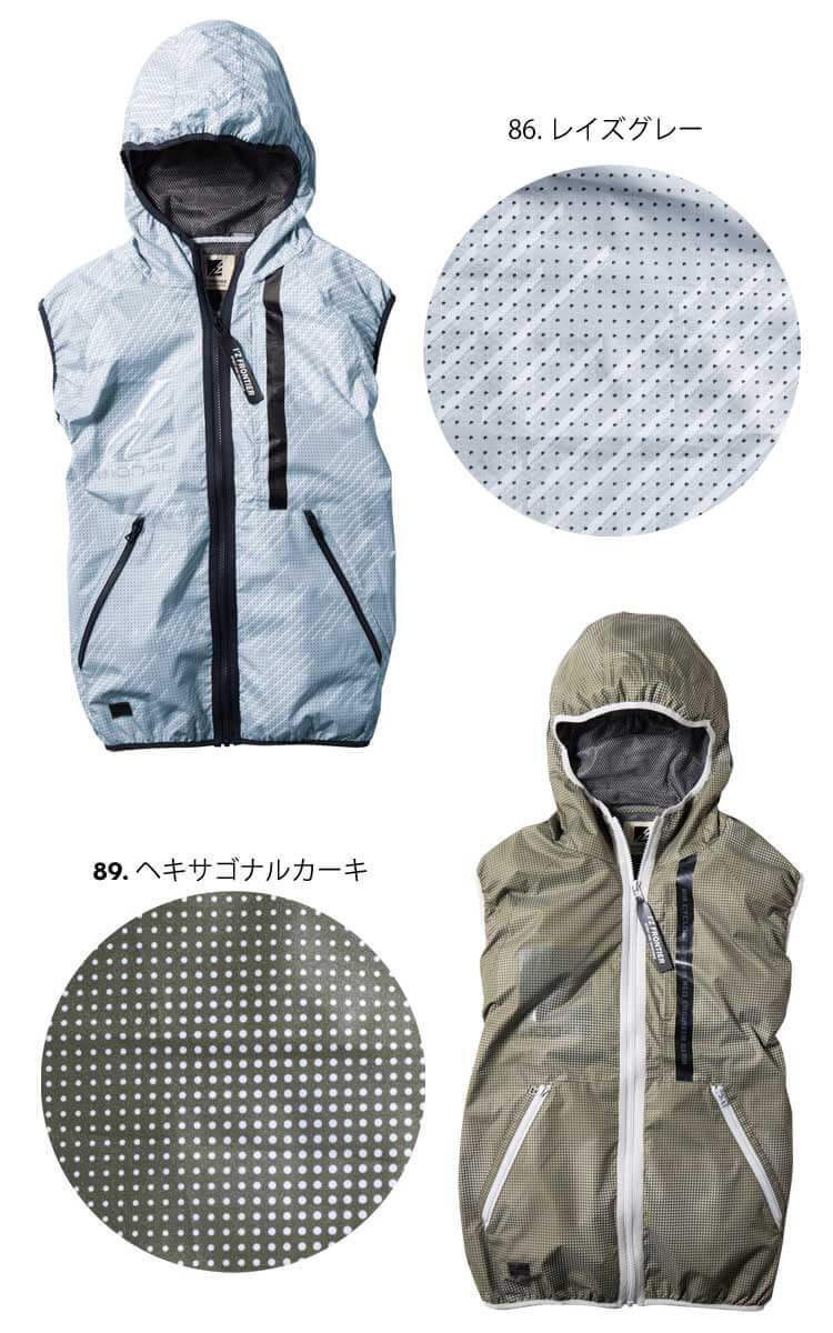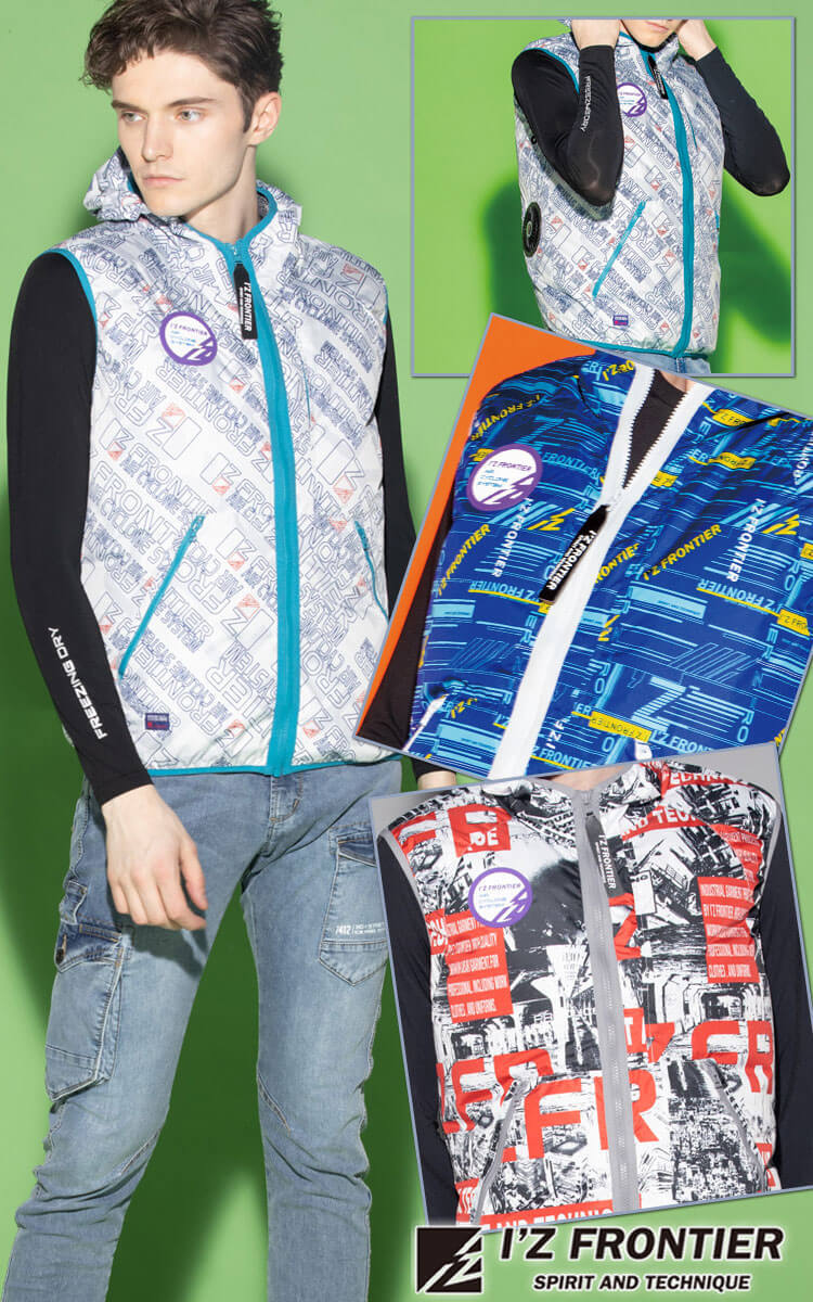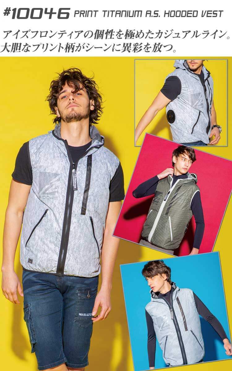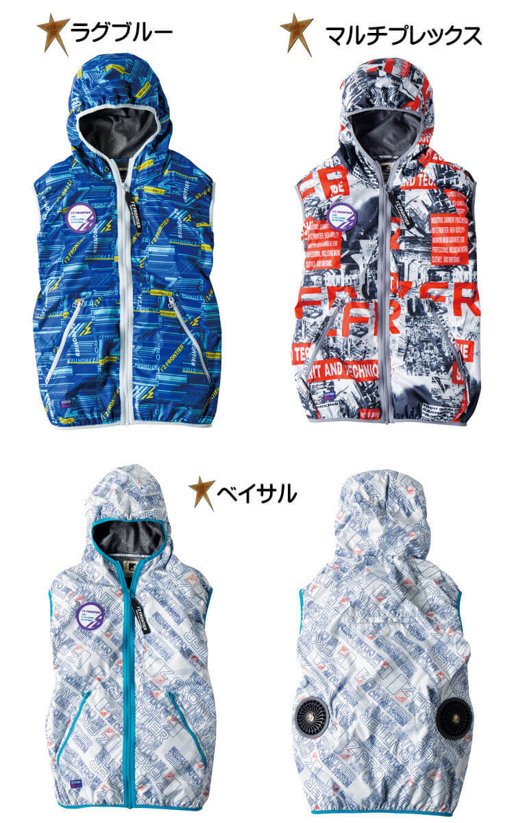 [在庫処分] 作業服 春夏 アイズフロンティア プリントA.S.フーディッドベスト(服のみ) 10046 LLサイズ 77ラグブルー