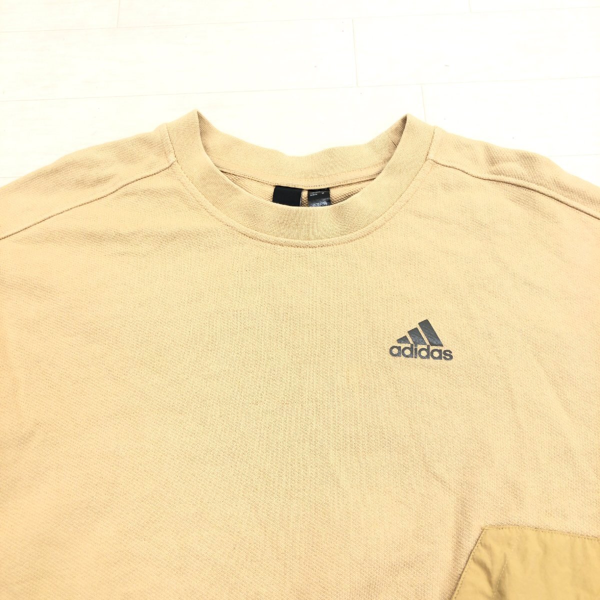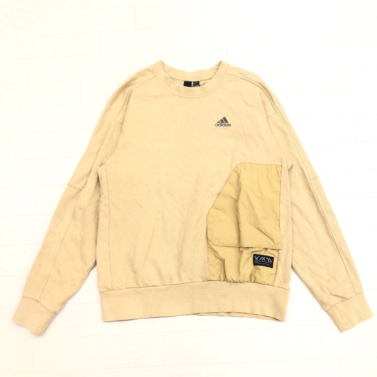 ●adidas アディダス 定価8,250円 PRSVEFABMIX クルー スウェット トレーナー S ベージュ ナイロンポケット スポーツMIX ストリート メンズ