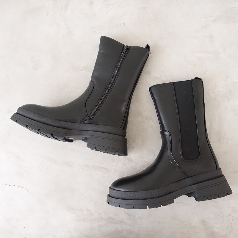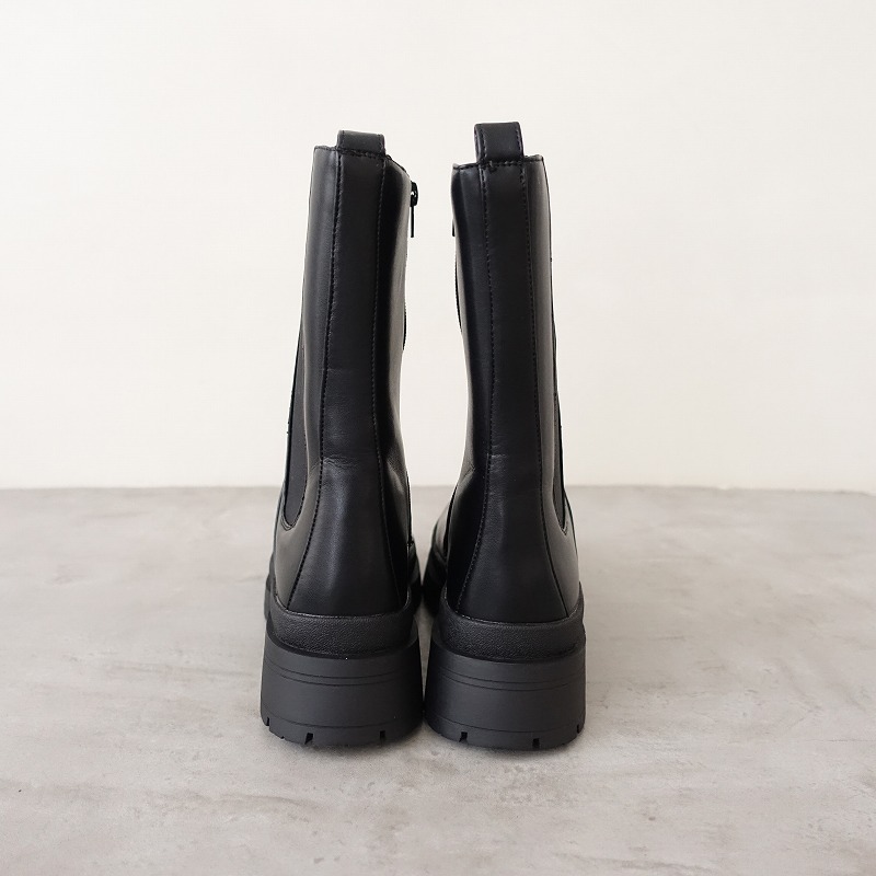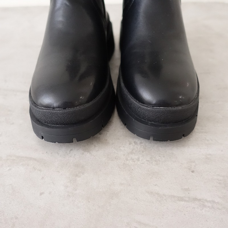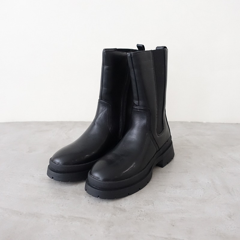 Bridget Birkinのモールドサイドゴアショートブーツです。カラーは黒で素材は合皮、ボリュームのあるモールドソールにサイドゴアのデザインで、サイドジッパーで着脱していただけます。インソールはクッション性があり、定価(メーカー希望小売価格)11,000円の商品です。 |