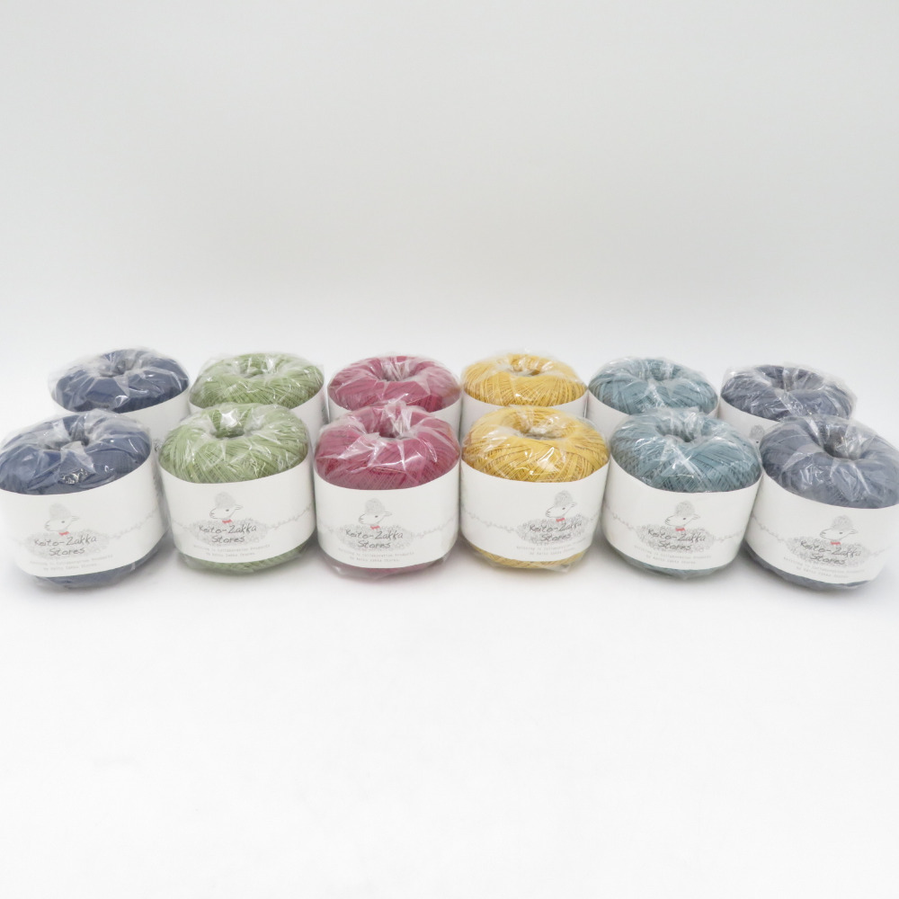 | レース糸 毛糸ZAKKAストアーズ PuPu ププ 12玉セット 6色アソート 1玉40g巻 約288m コットン100% 日本製 春夏 未使用品 |