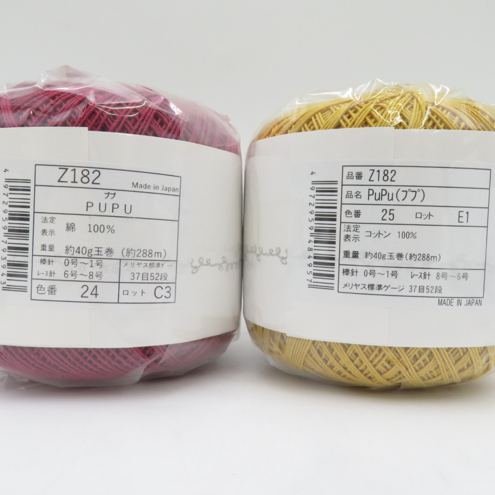| 商品説明 | 天然素材のインド綿を100%使用したレース糸です。 インド綿は繊維が太く短いですが、とても肌触りが滑らかで柔らかい素材。 吸湿発乾性、通気性に優れており、ウェアなどにするとさらっと心地よい着心地になります。 【Z182】PuPu ププ 仕立:1玉40g 約288m 棒針:0~1号 レース針:6~8号 メリヤス標準ゲージ:37目52段 色: col.10 インディゴ col.23 アイビーグリーン col.24 アガット col.25 サンフラワー col.26 アンティコグリーン col.27 ディキシーブルー | ||