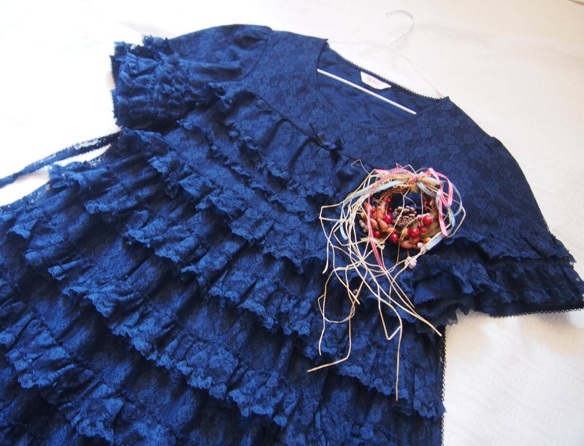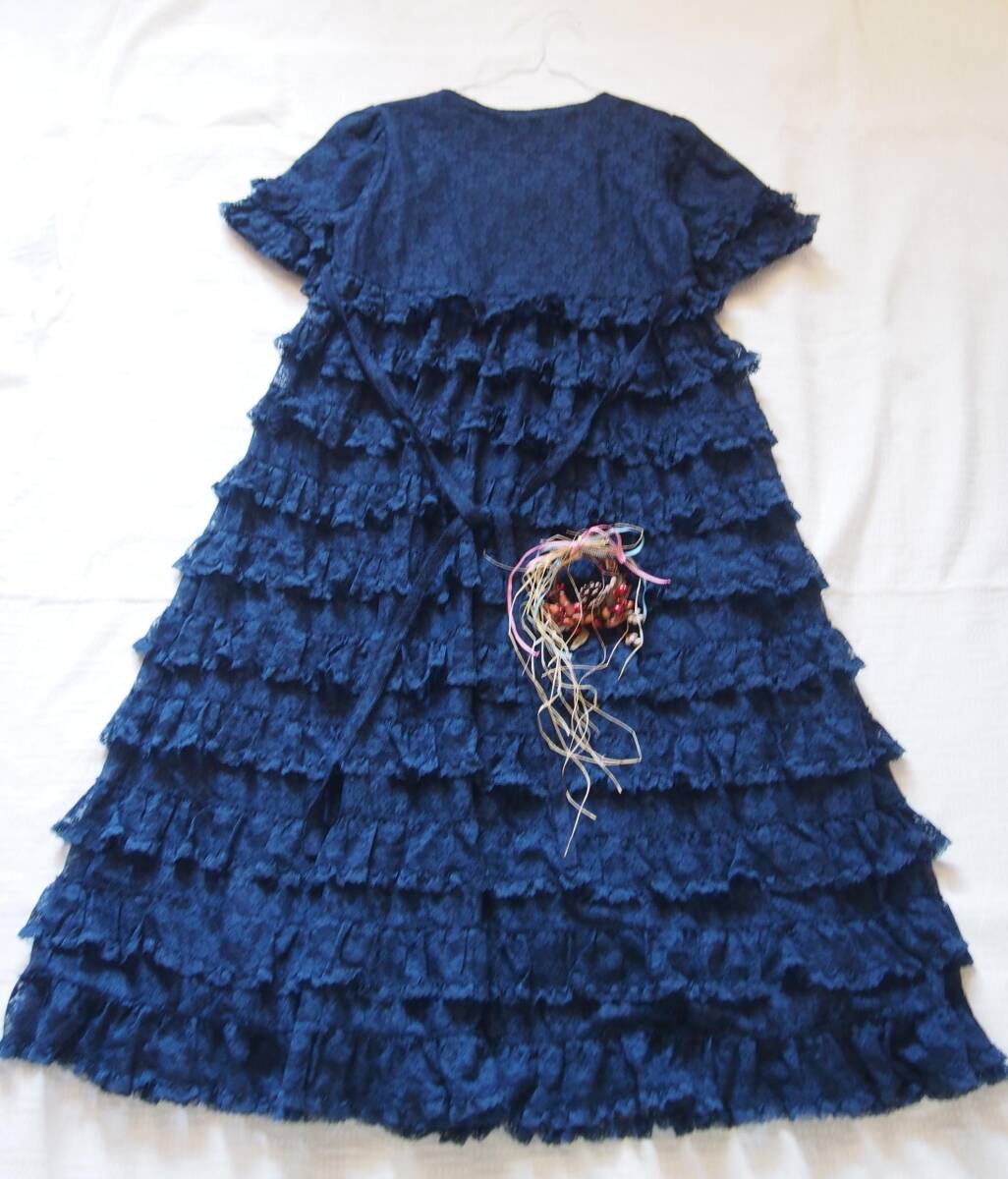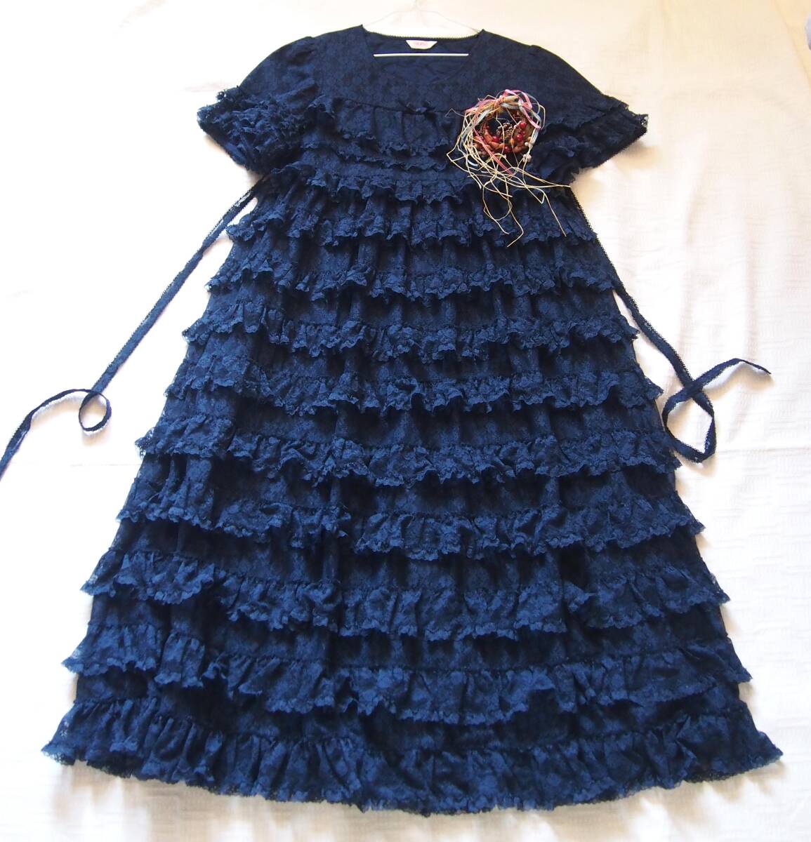 ネイビーの総ラッセルレースが豪華で可愛い段々ワンピースです。