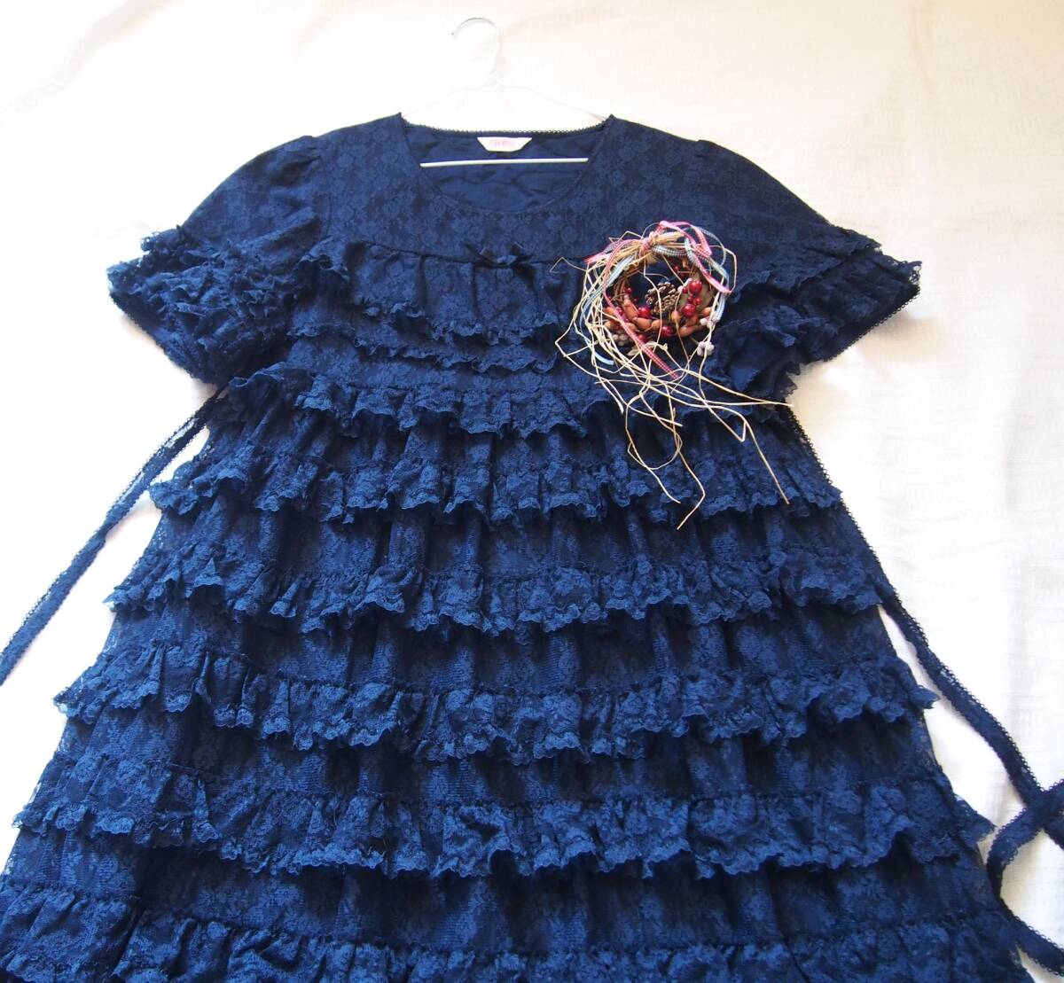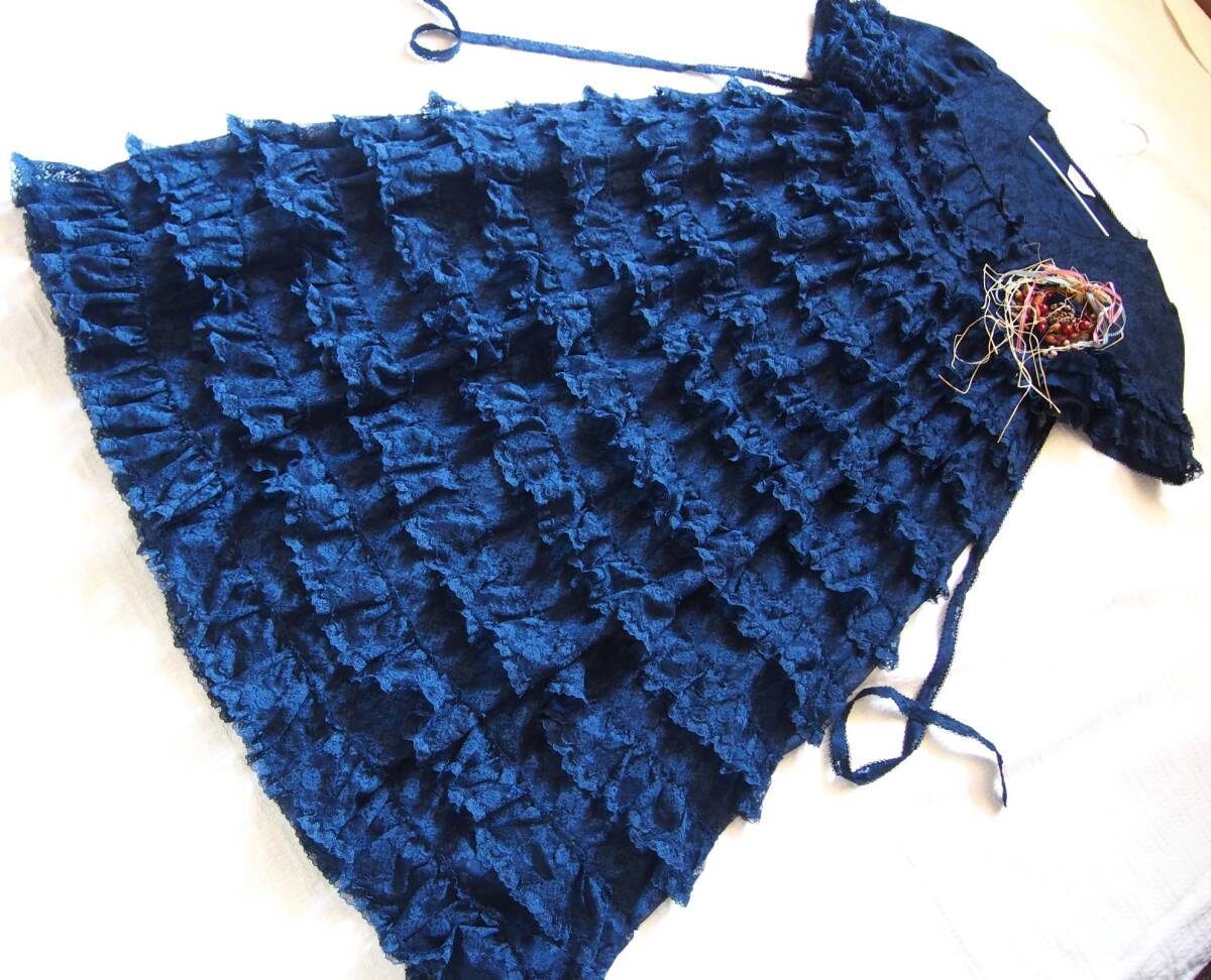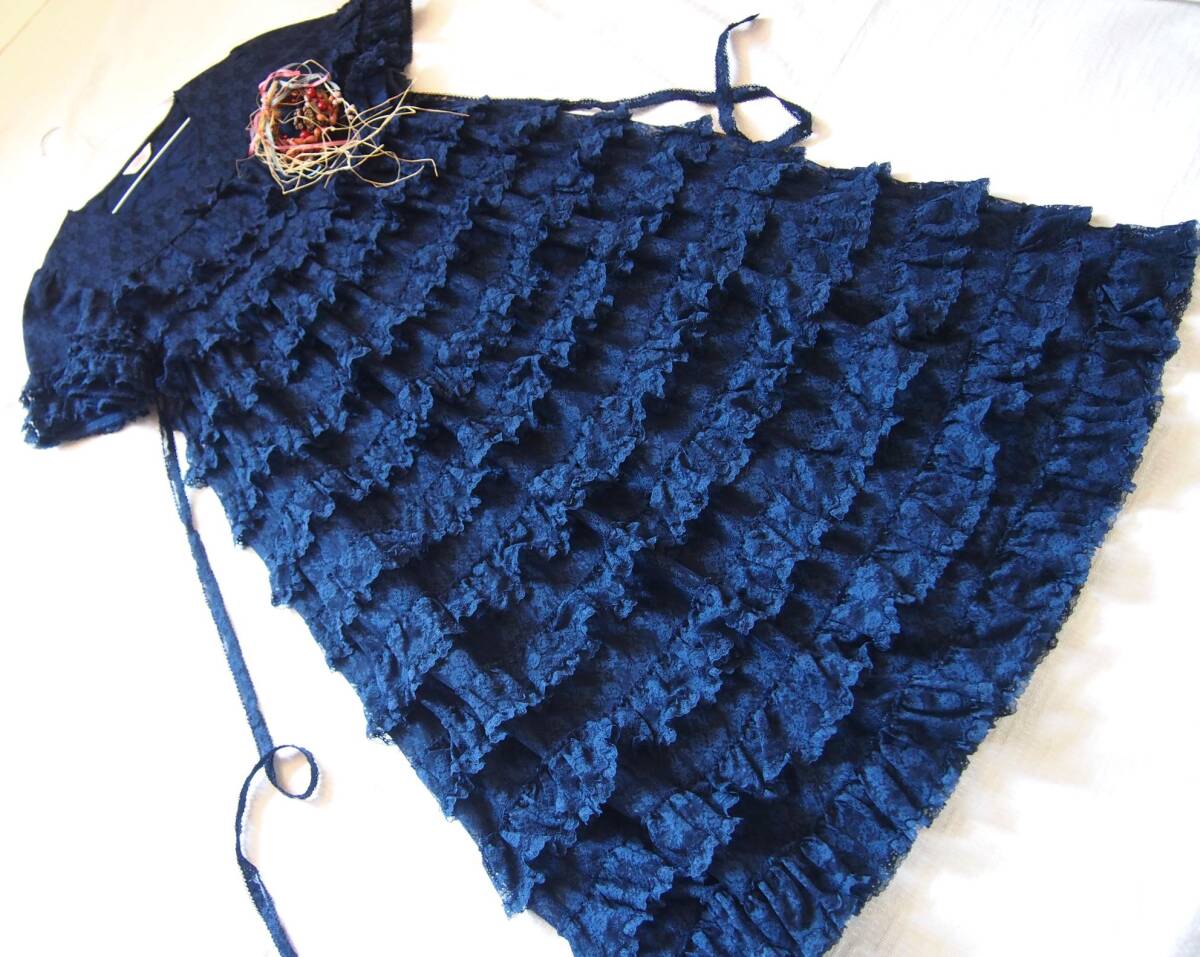 ネイビーの総ラッセルレースが豪華で可愛い段々ワンピースです。