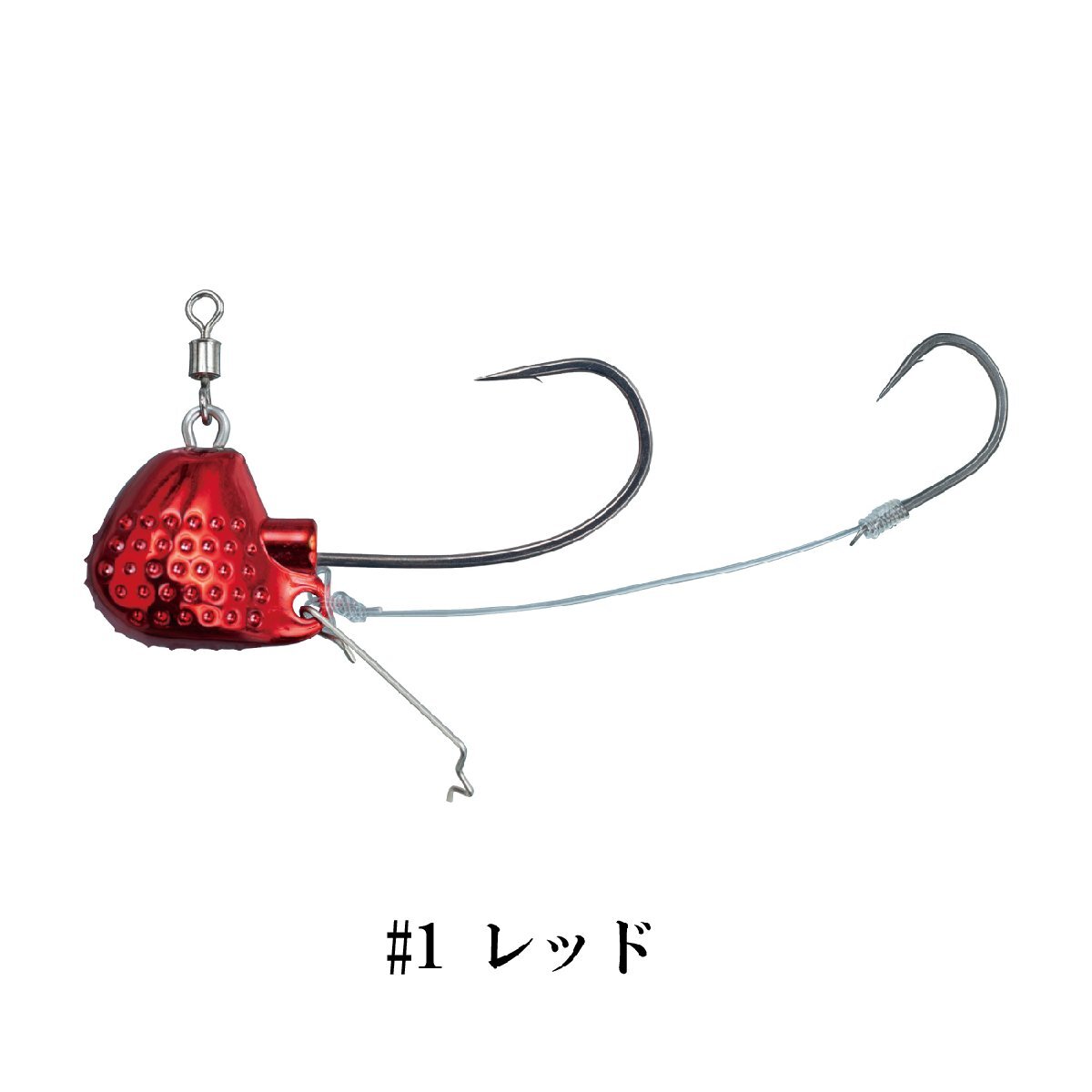 ヘッド側面のディンプル加工は、凹凸による明暗効果と誘いの際の高いフラッシング効果により広範囲の真鯛を魅了します。親鈎は度重なる実釣により導き出した、即アワセに最適な鈎先角度「ゼロアングル」を採用し、コンタクト性を重視した孫鈎と相まってフッキング率を実現します。