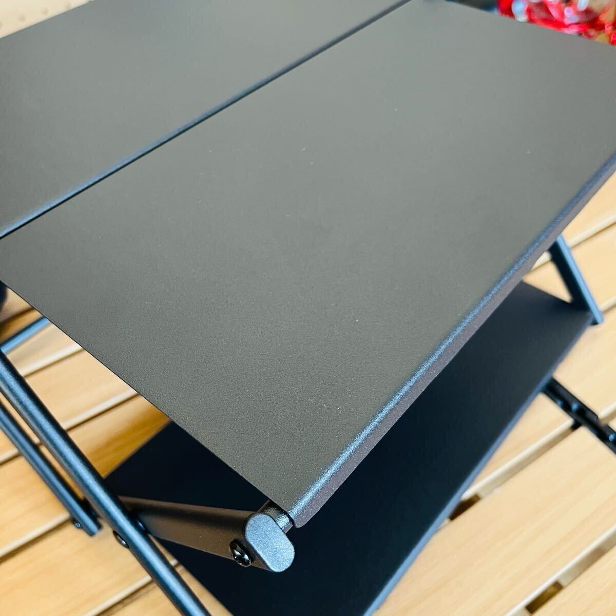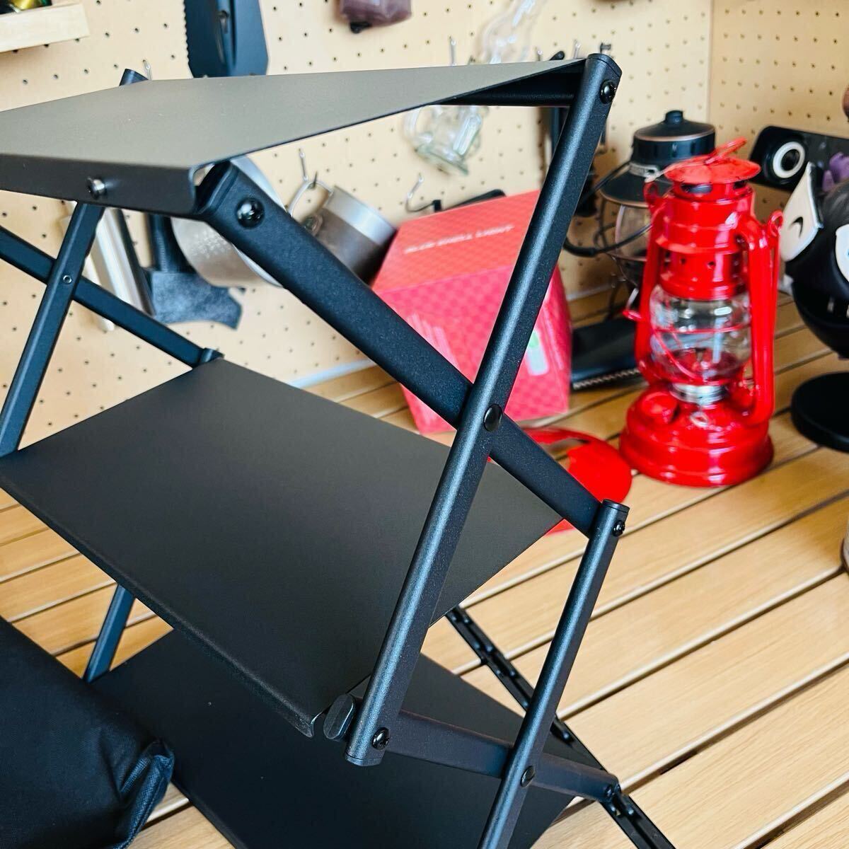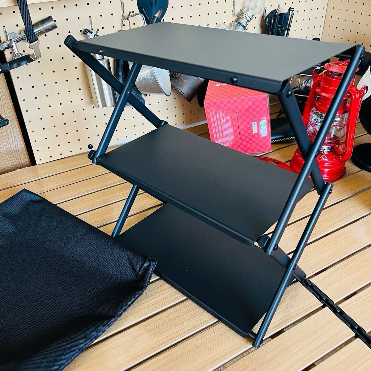 キャンプ用 超高品質 折り畳みテーブル 多機能卓上置物棚 収納棚 炭素鋼製 クッカー小物収納ラック アウトドア 野外登山 収納付