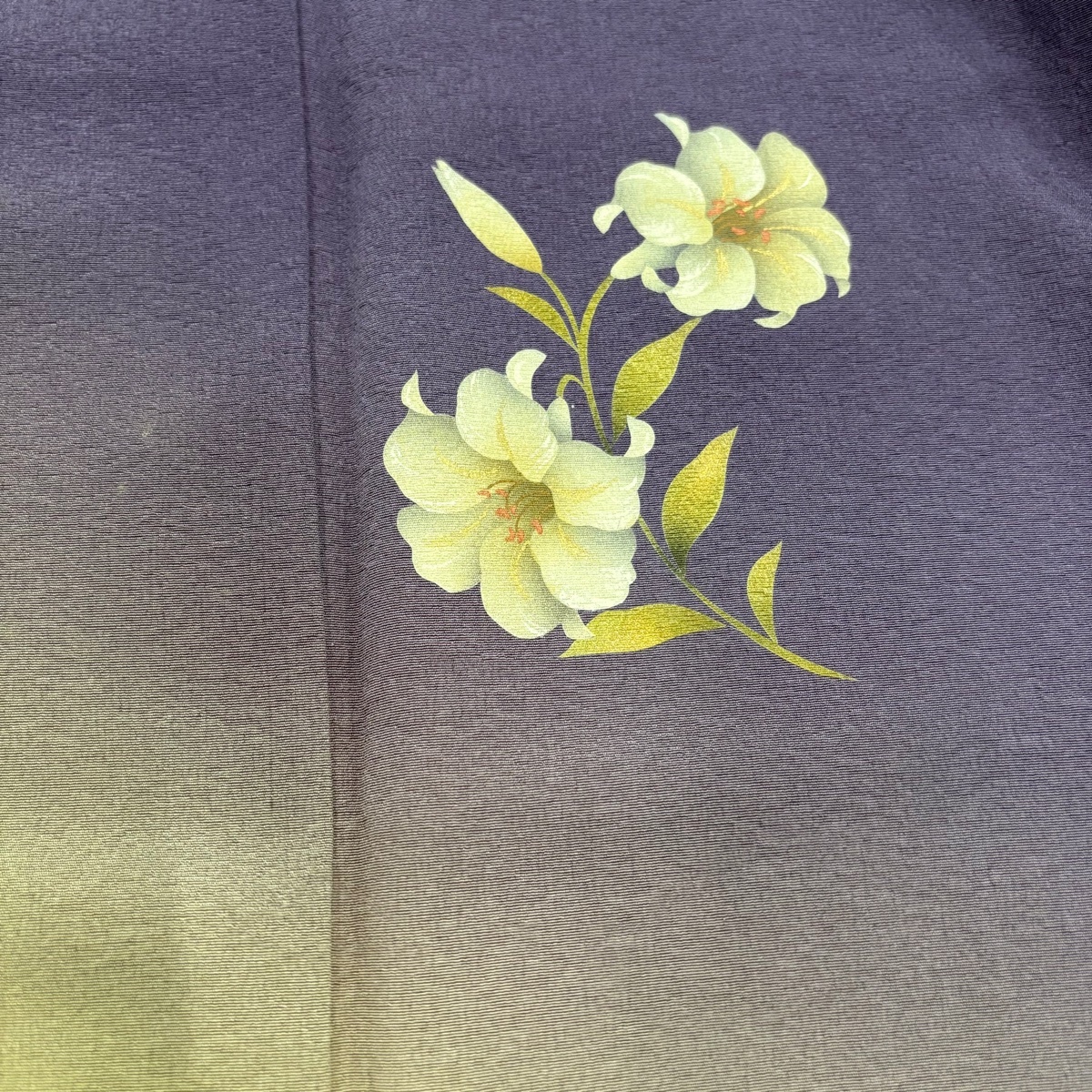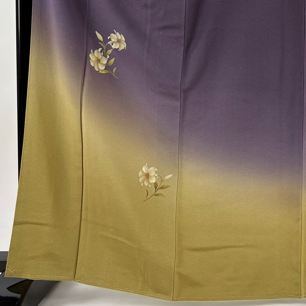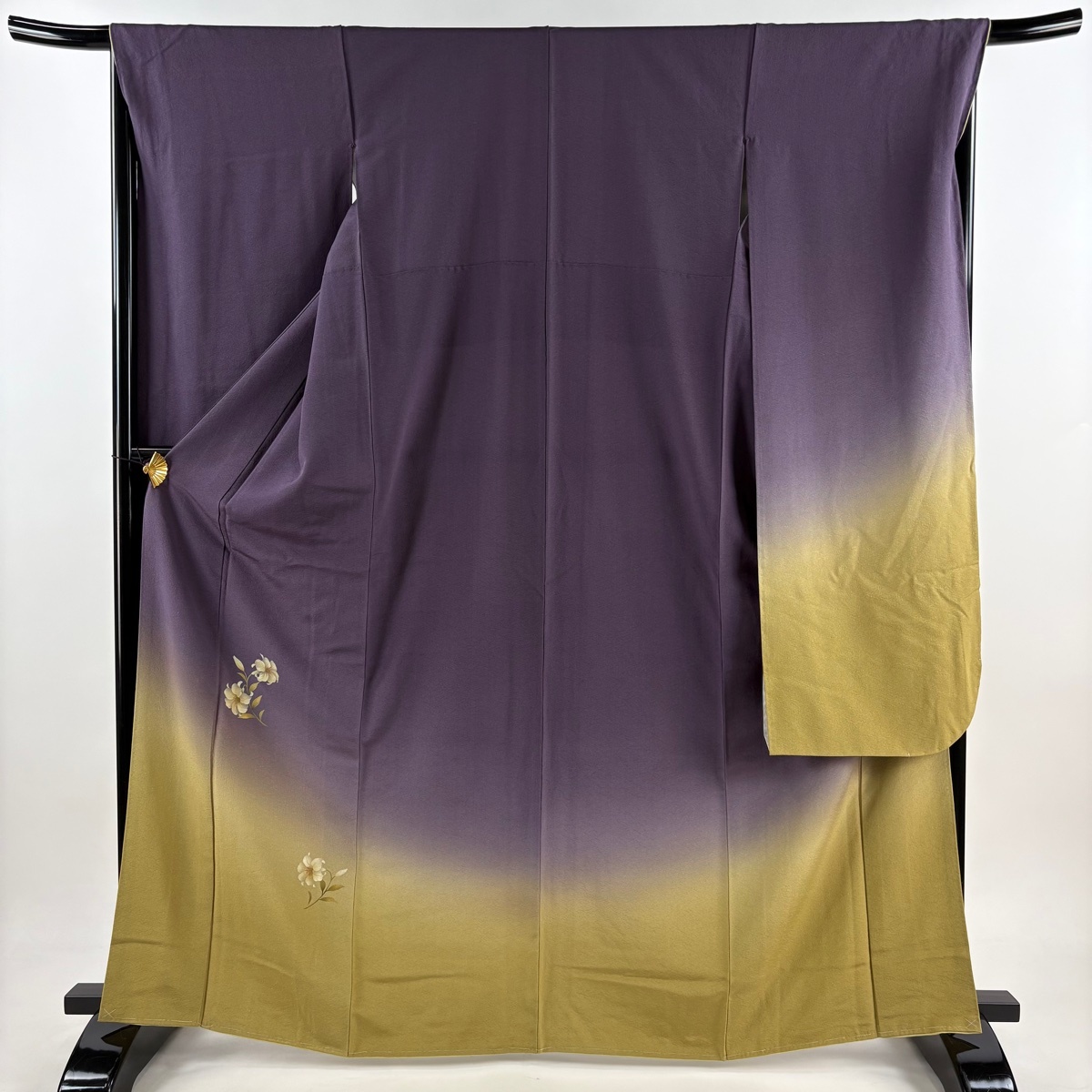 振袖 秀品 草花 金彩 ぼかし 紫 袷 身丈165.5 裄丈67 M 正絹 【中古】 |