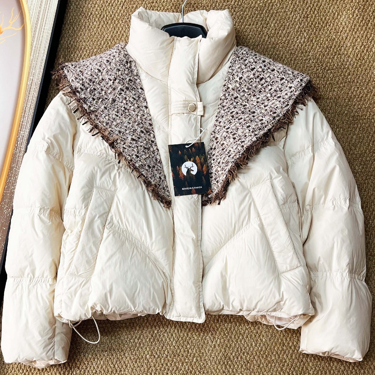 ダウンジャケット カナダ製造 ダックダウン90% 柔らか 軽量 防寒 切替 ショート丈 オシャレ コート デート レディース OL 通勤 秋冬 SIZE:L