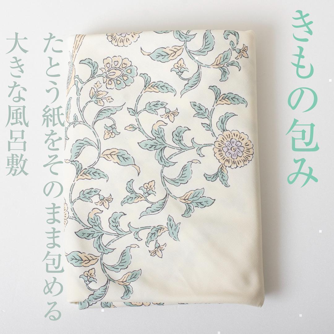 風呂敷 きもの包み【花鳥更紗(アオミドリ)】ふろしき 150cm 綿100% エコ風呂敷 着物が包める大きな風呂敷 |