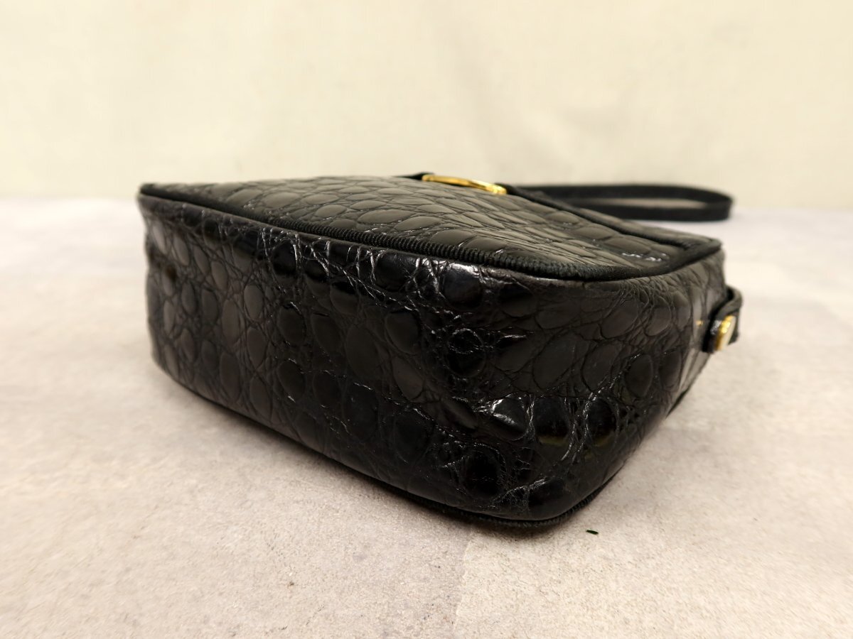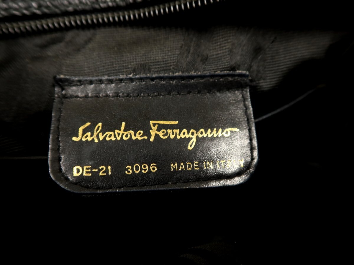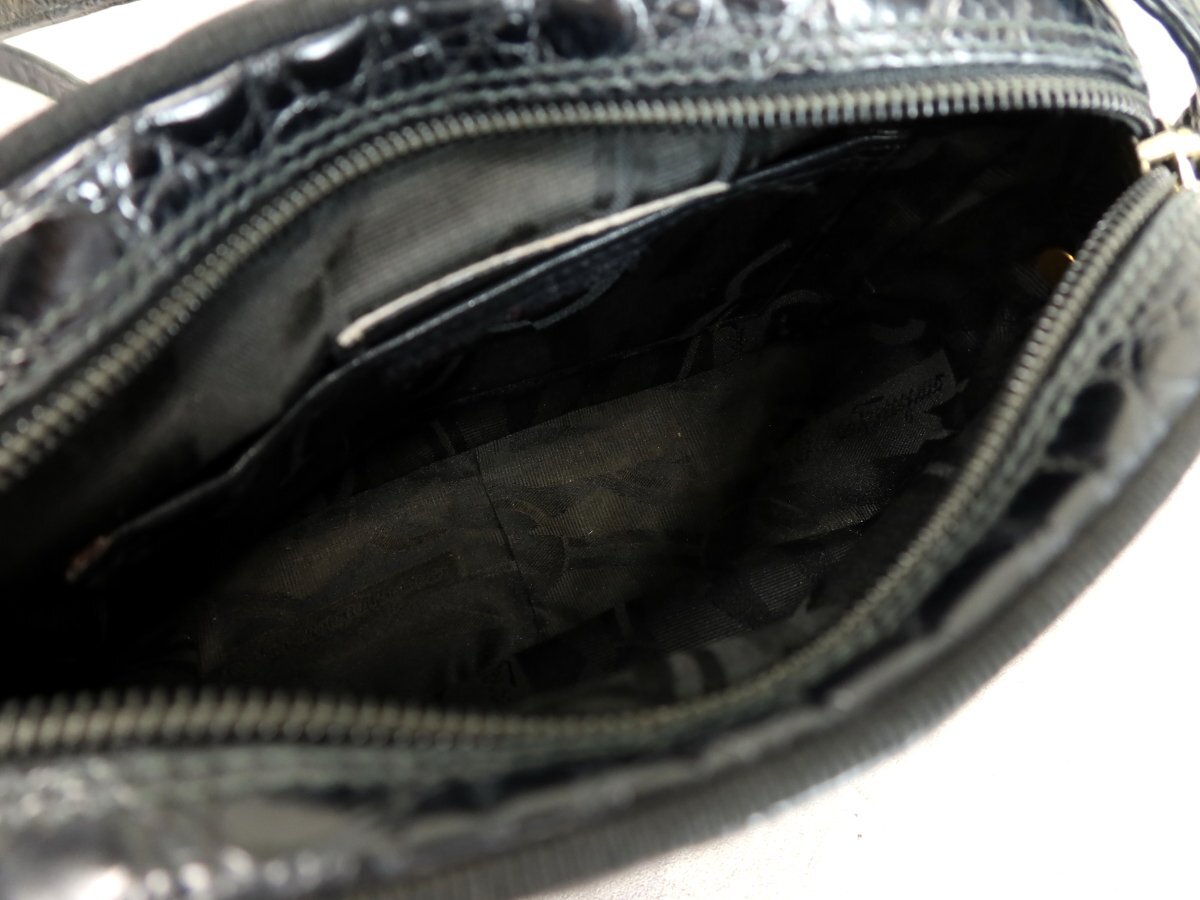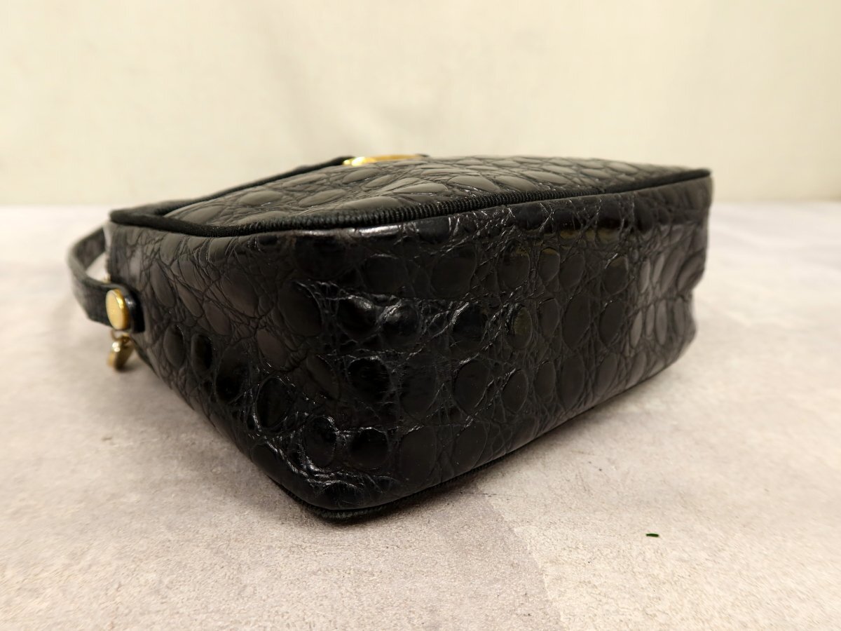 ●超美品●Salvatore Ferragamo フェラガモ●ヴァラ●クロコダイル 型押し レザー 本革●ショルダー バッグ●黒●ゴールド金具●Js60913